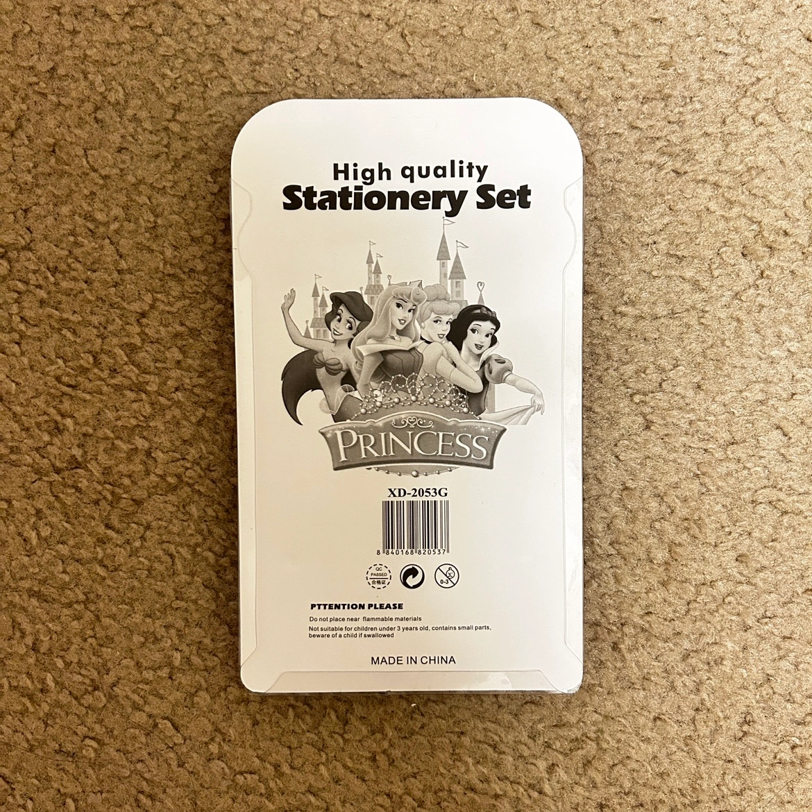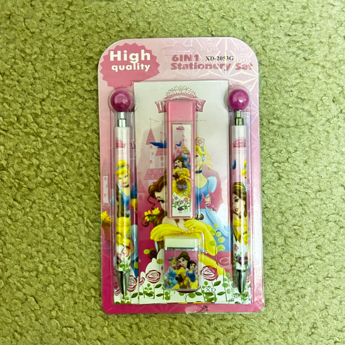 A Disney Princess Theme 6-in-1 set includinga pen, mechanical pencil, lead, eraser and two notepads. Pick up only.