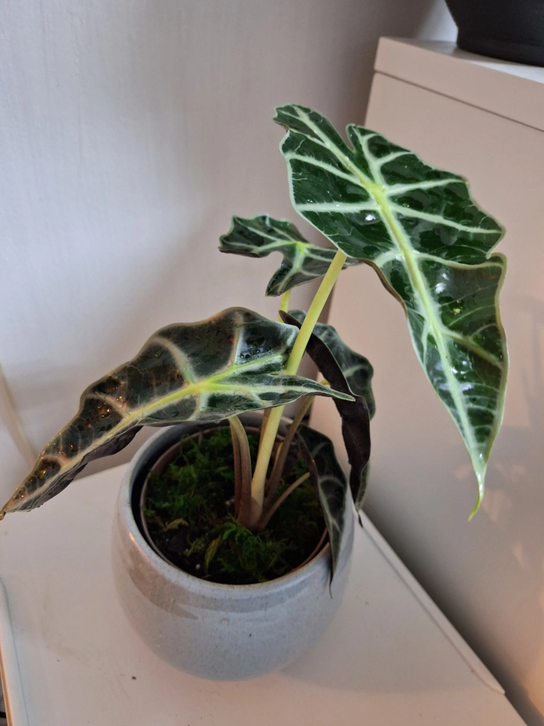 with DEARTIS pot 14" tall Alocasia polly plant comes in the pot pictured.