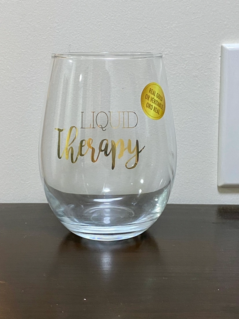 Brand new stemless wine glass with "Liquid Therapy" written on it in real gold lettering. This was a gift but I don’t have room for any more glasses in my kitchen. Pickup near Kennedy & 401