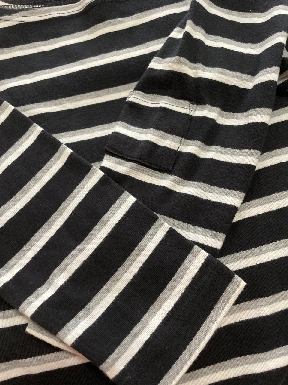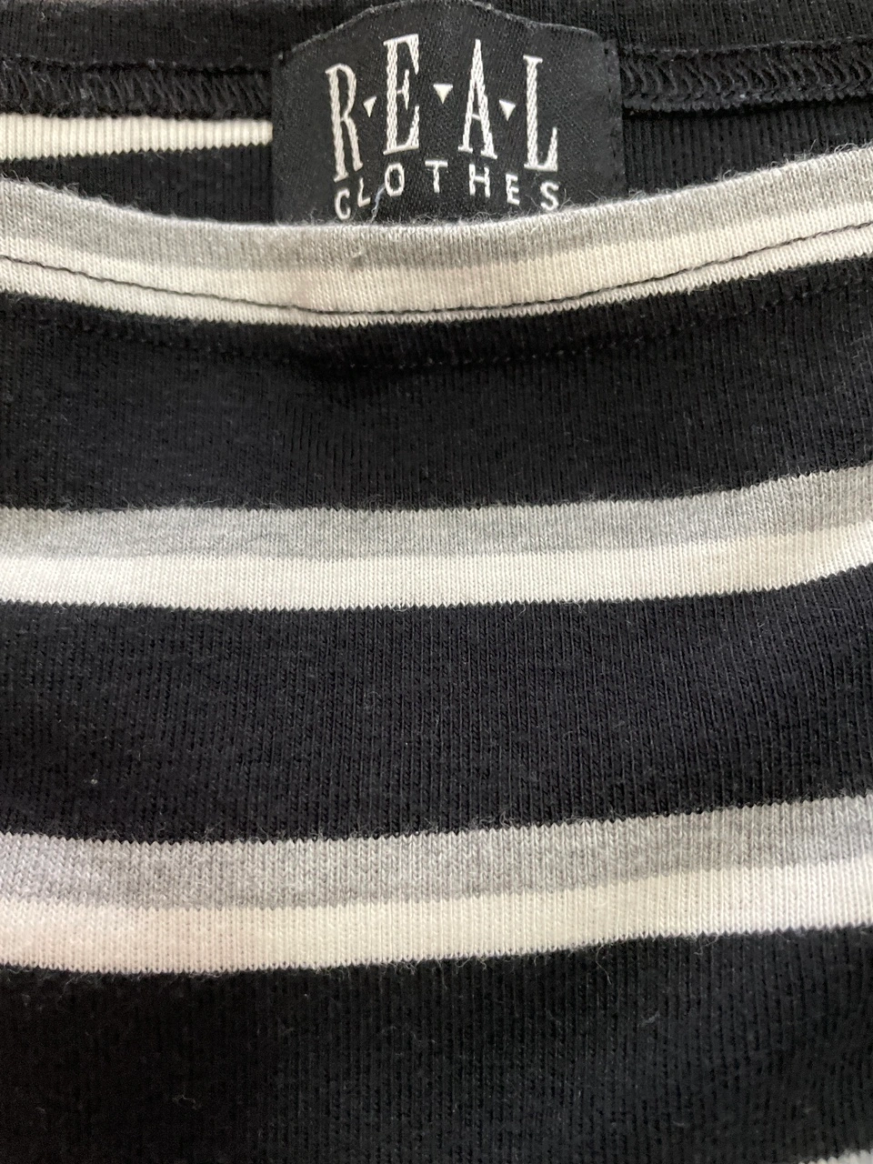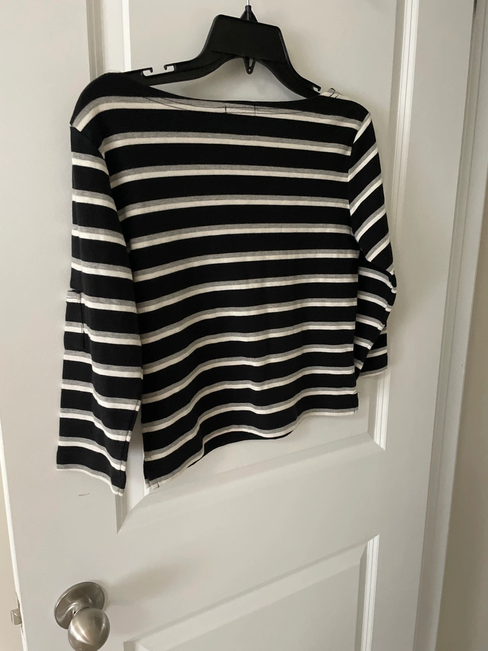 Black and white striped long-sleeved top with a slightly cropped fit. Smoke free and pet free home