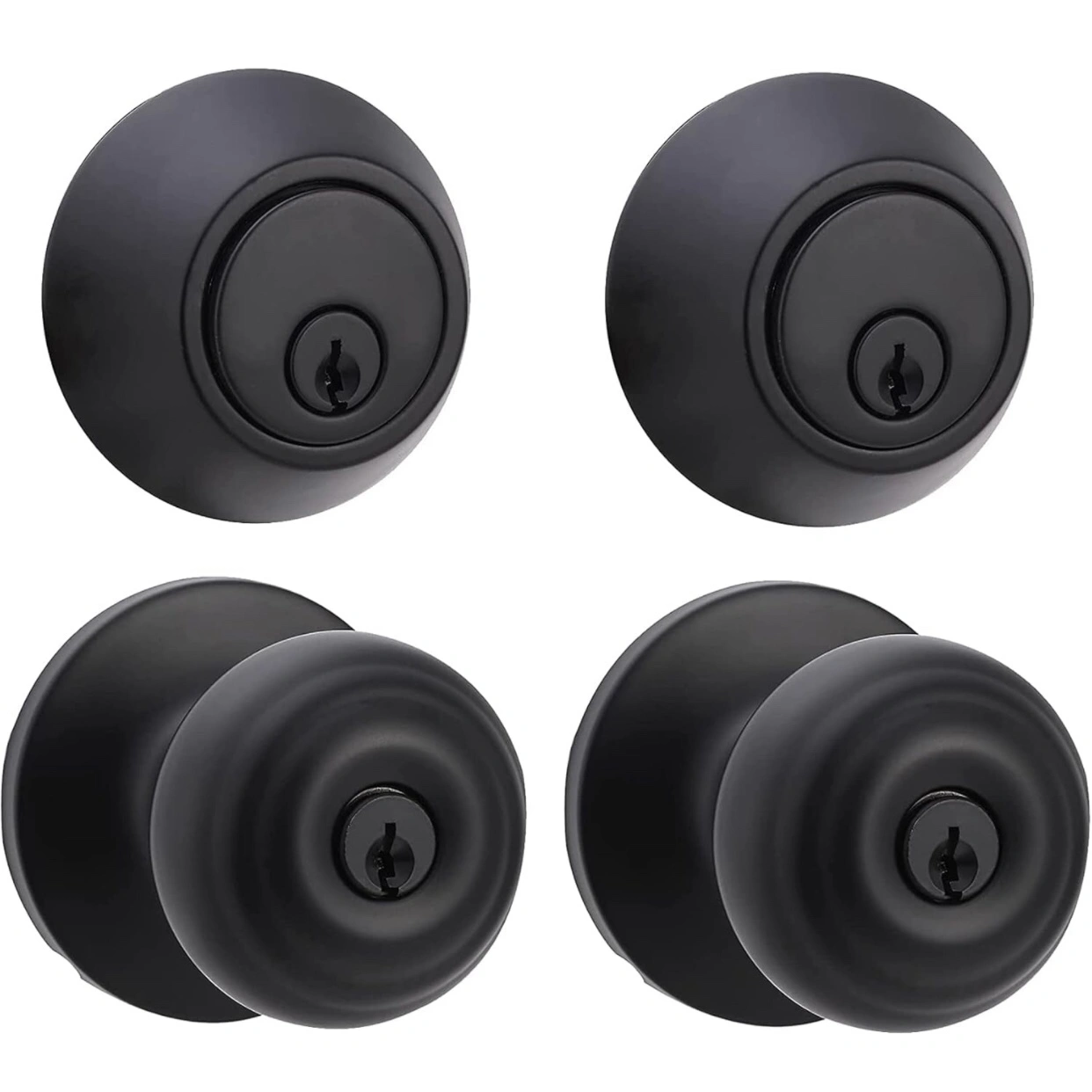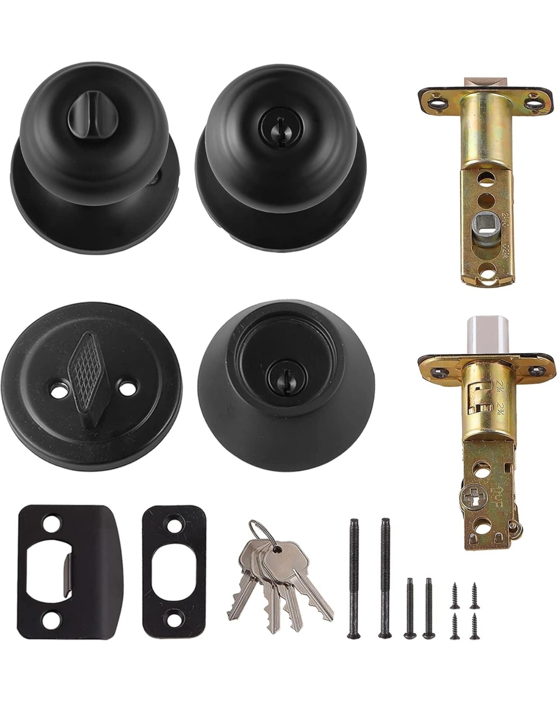 Amazon Basics Exterior Door Knob With Lock and Deadbolt, Classic, 4 count, Set of 2, Matte Black, 8.51 CM L x 6.5 CM W ❤️ barand new in box ❤️ For more information, please copy the title to google ☺️ No meet,No delivery ,house Pick up only by Coquitlam. Thanks 😊 Cash only price firm ,💡 Not reply for lowball !! still up means available. First come, first serve.No Hold !!! No return or exchange for non defective item。 Brass body; steel internal structure Adjustable latch from 2-3/8 - 2-3/4 inches (60-70mm) Includes four (4) brass keyed alike keys, KW1 keyway, rounded steel faceplate and strike, and zinc alloy latch bolt Detailed installation instructions included Backed by an Amazon Basics 1-year limited warranty Fit all doors 3.49 cm to 4.45 cm in thickness Lock body assembling hole 2-18”(54mm) dia. Latch assembling hole 1”(25mm) dia.