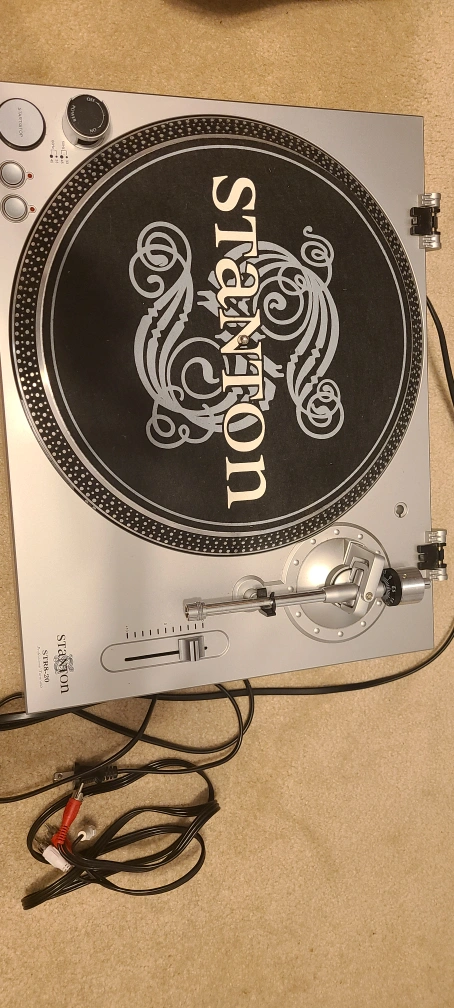 Turntable is in great working condition and comes with cables and a slipmat. No headshell, cartridge or needle.