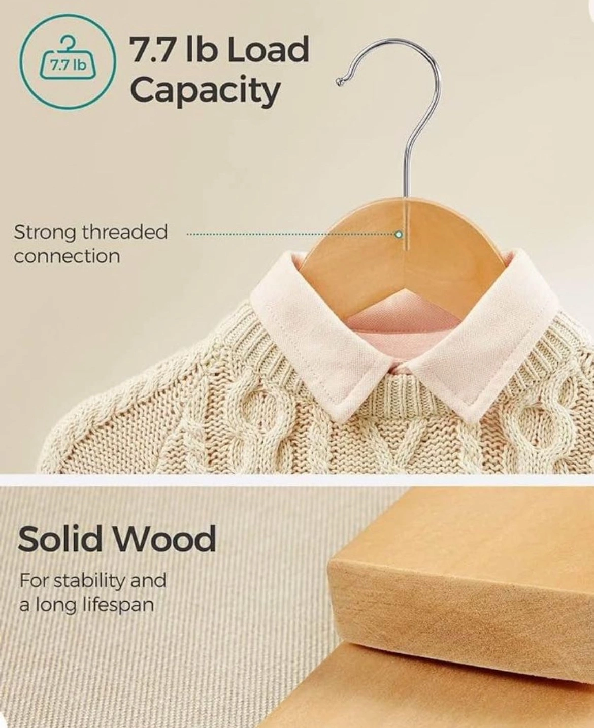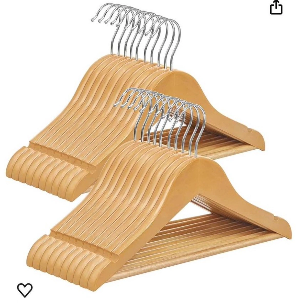 Brand new never used!!! Set of 20 wooden hangers suitable for ages 0-8.