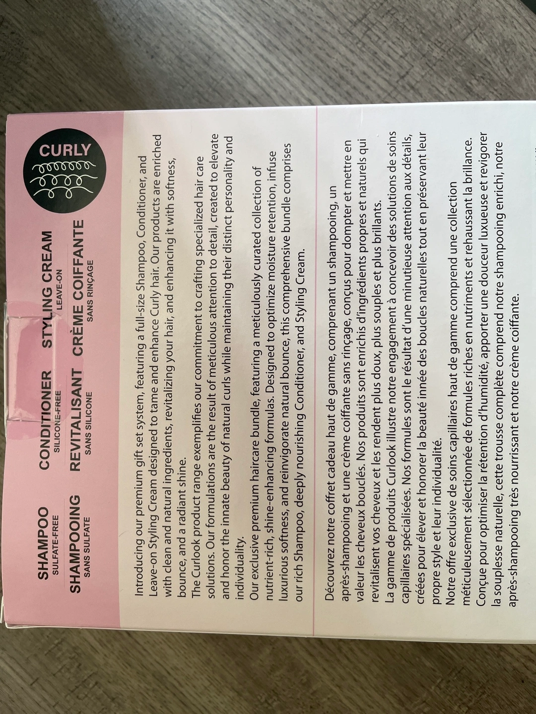 Received these hair products as gift. I don’t have curly hair so doesn’t work for my hair type. Checked on their website, value $100.