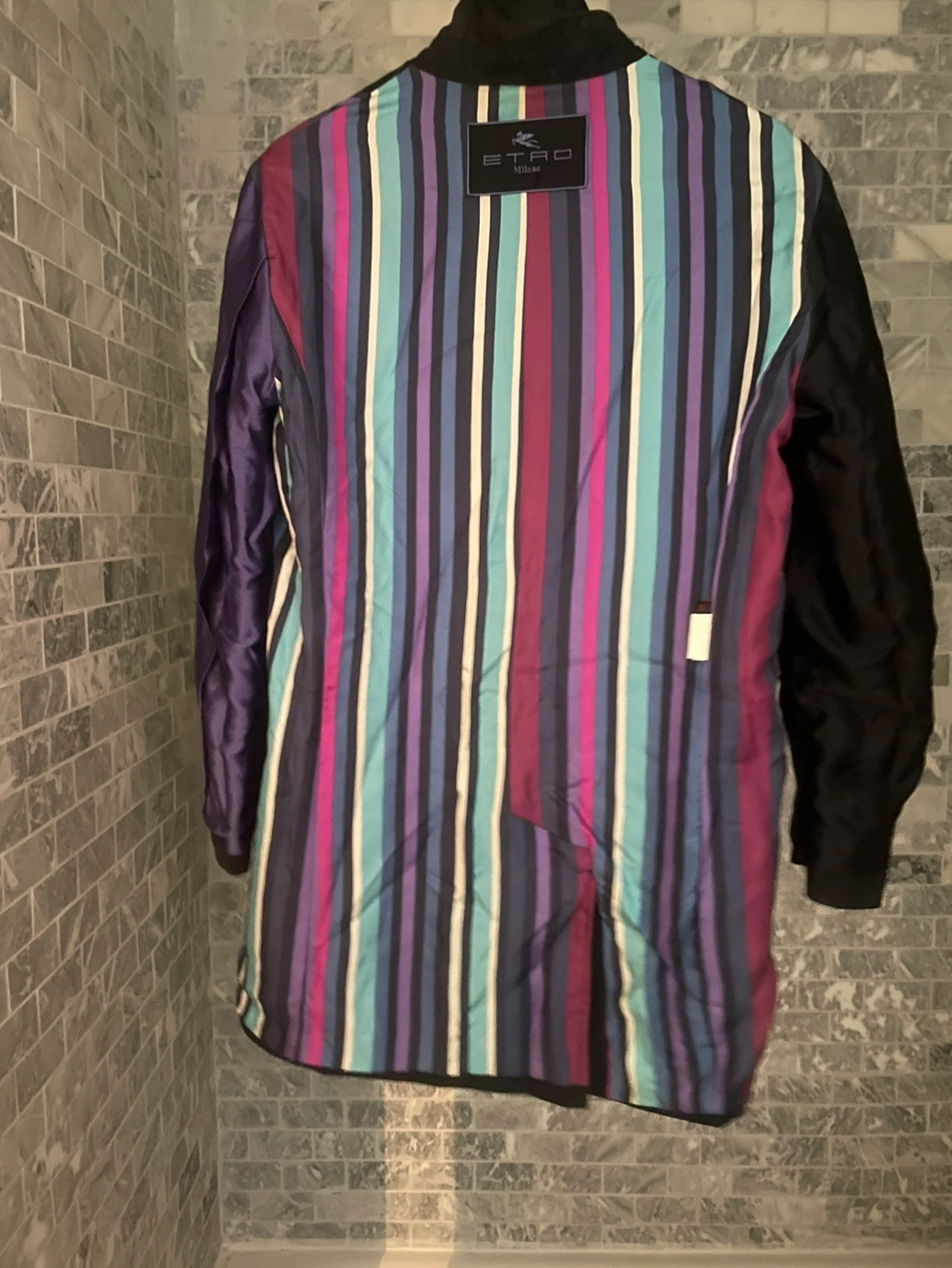 On offer: a Mac jacket from Etro in deep, inky black cotton. Could be treated for additional water repellency. Lining in bemberg, in an array of colour. Beautifully made, and comfortable. Purchased at Holt Renfrew Vancouver for 1200. Thank you for your interest; I look forward to hearing from you.