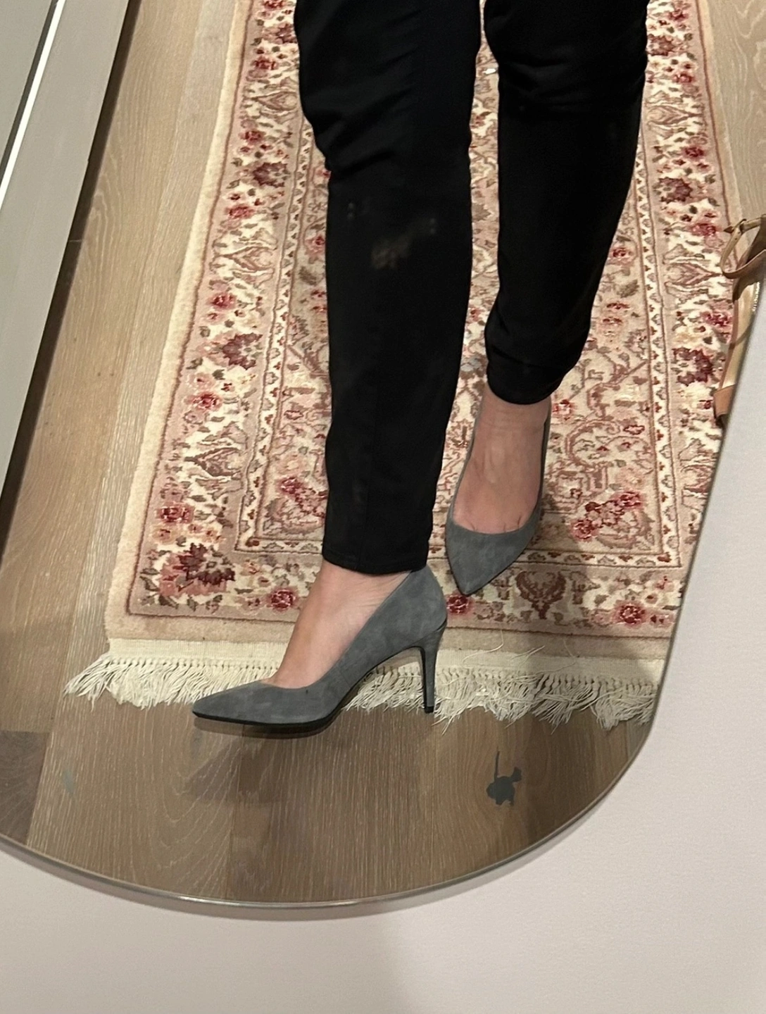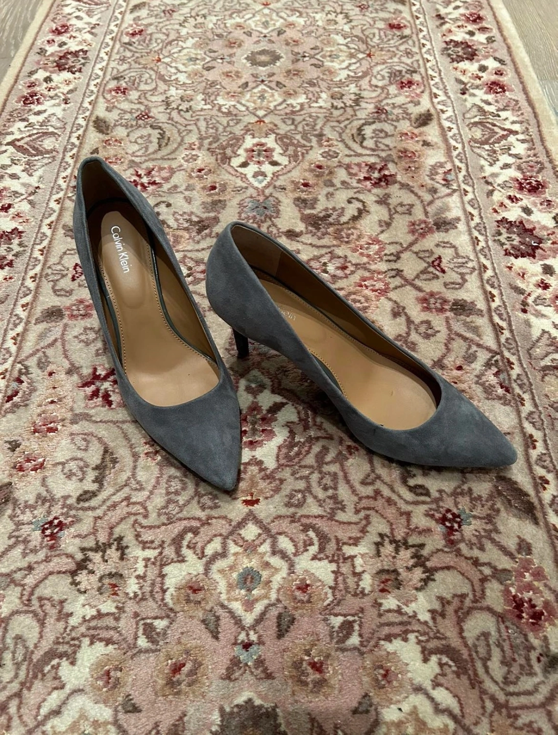 Beautiful grey suede leather heels. Brand new. Size: 8 1/2. 3 1/5 inch heel (see last pic). Pick up in the Beaches or possibly downtown at Bay and College during the week.