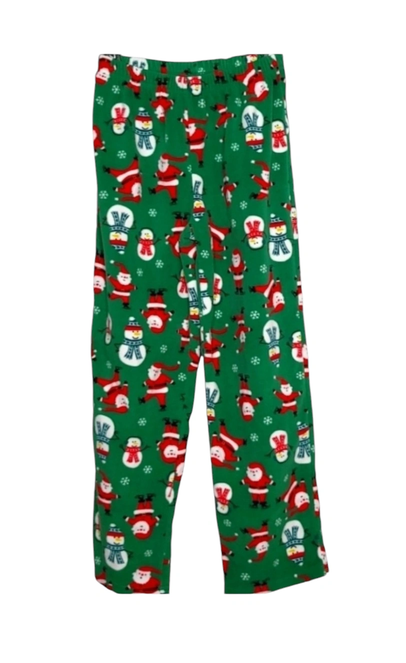 *** PICK-UP AT BROADVIEW & DANFORTH AREA *** Fleece pajama pants with a green background and a repeating pattern of Santas and snowmen. They have an elastic waistband. My home is pet-free & smoke-free.