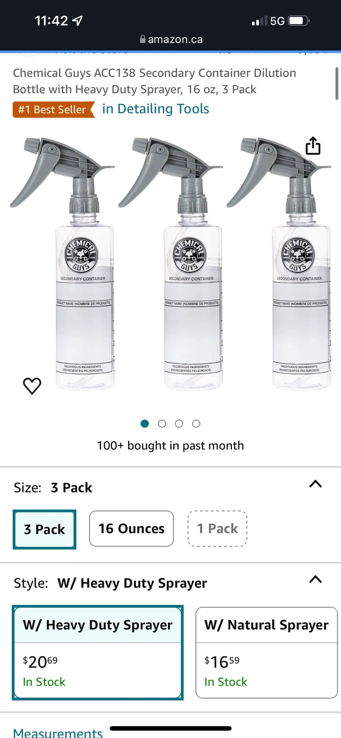 Chemical Guys ACC138 Secondary Container Dilution Bottle with Heavy Duty Sprayer, 16 oz, 3 Pack
