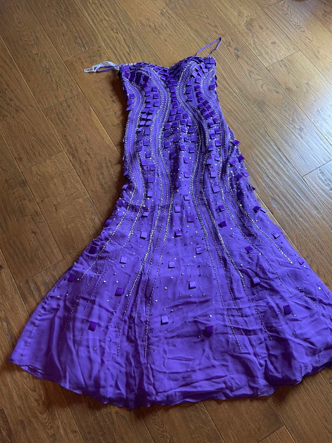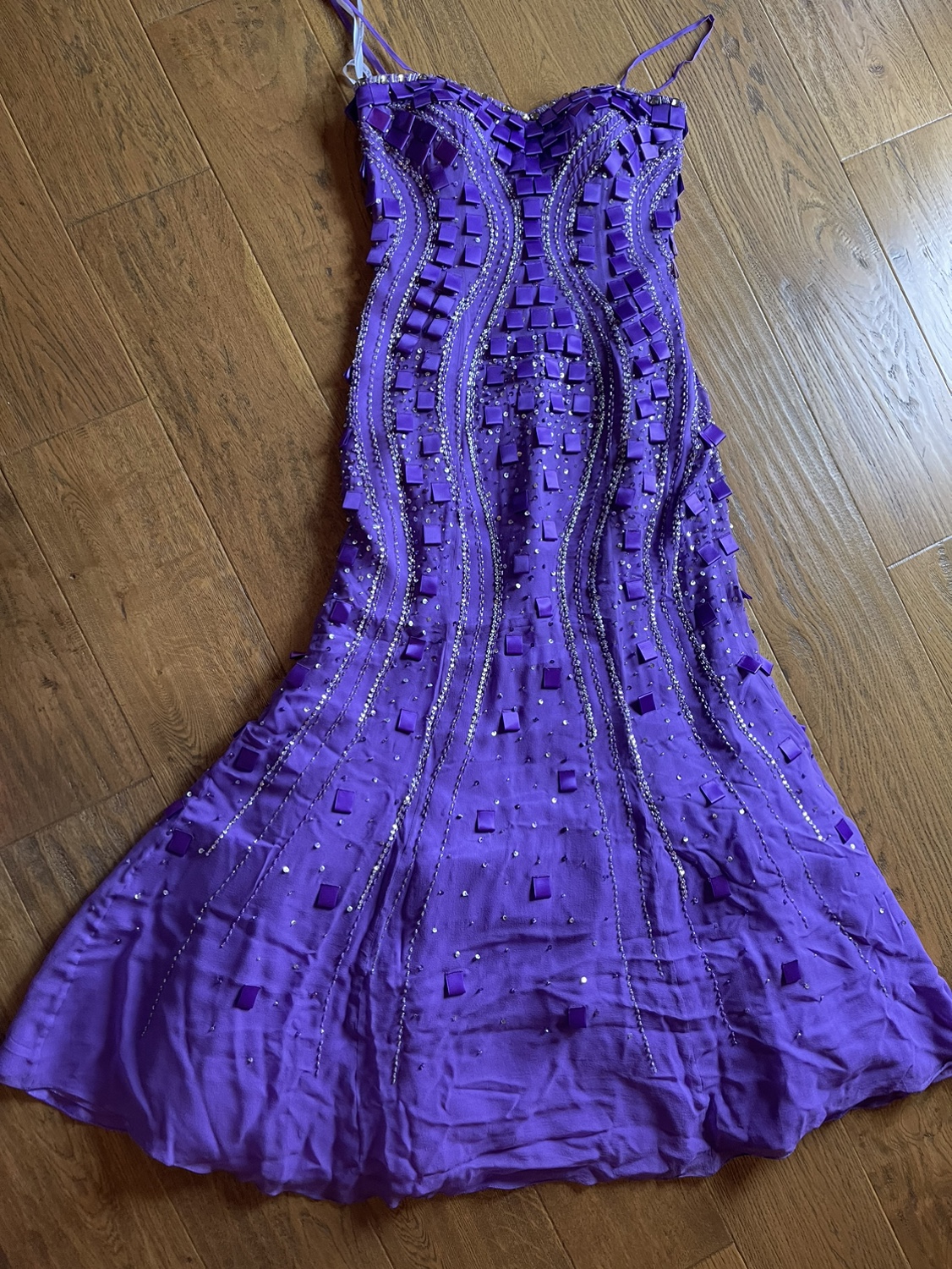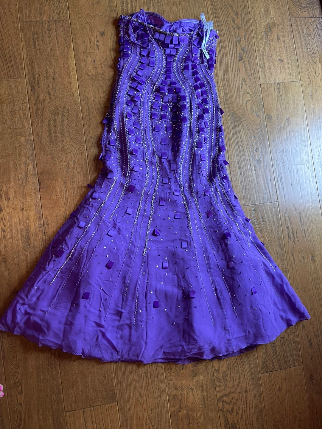 Stunning purple mermaid style dress, fully beaded and lined. A perfect choice for a formal occasion. Has a sweetheart neckline. The dress was worn once. Size 6