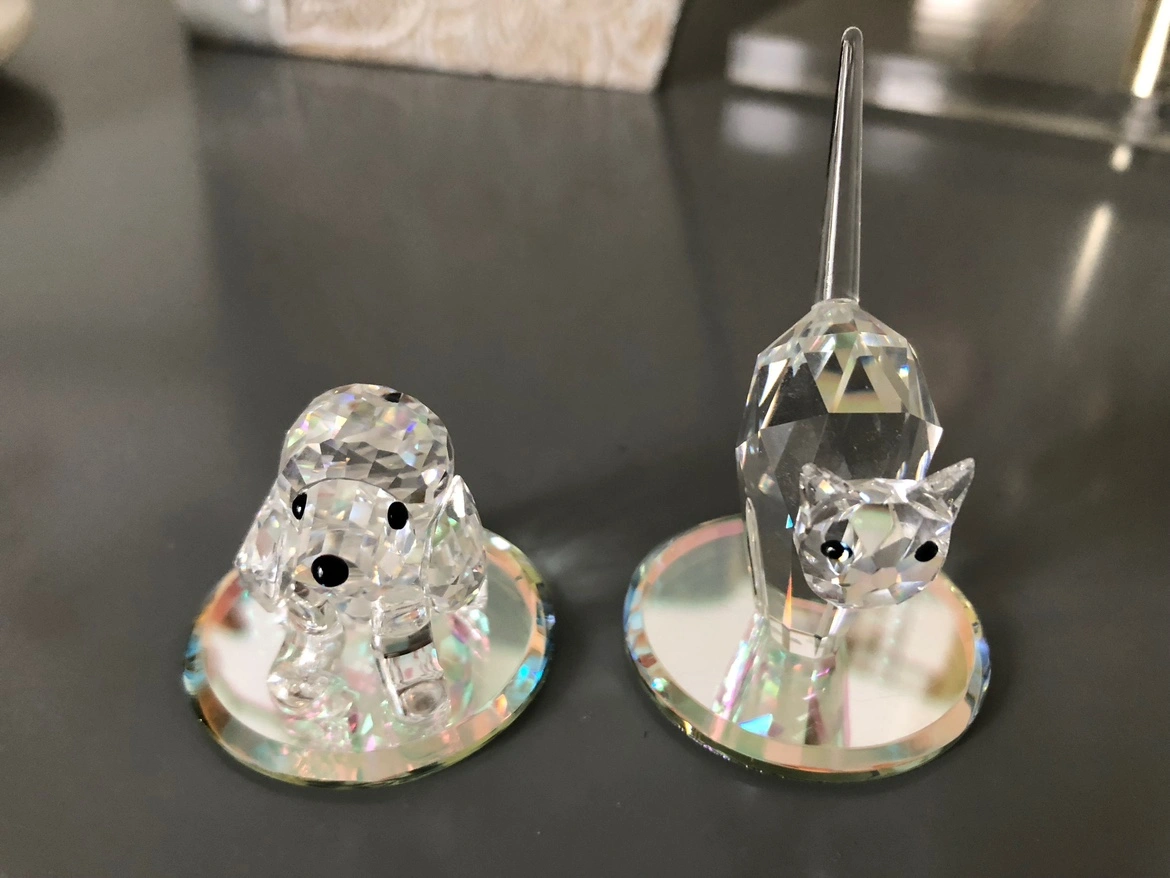 Genuine Swarovski crystal. 1990’s Cat: 2 inches tall Dog: 1 inch tall $20 each Display Mirrors included *Dog figurine small tail missing* ⭐️Major intersection for pick up is Avenue Road and Eglinton⭐️