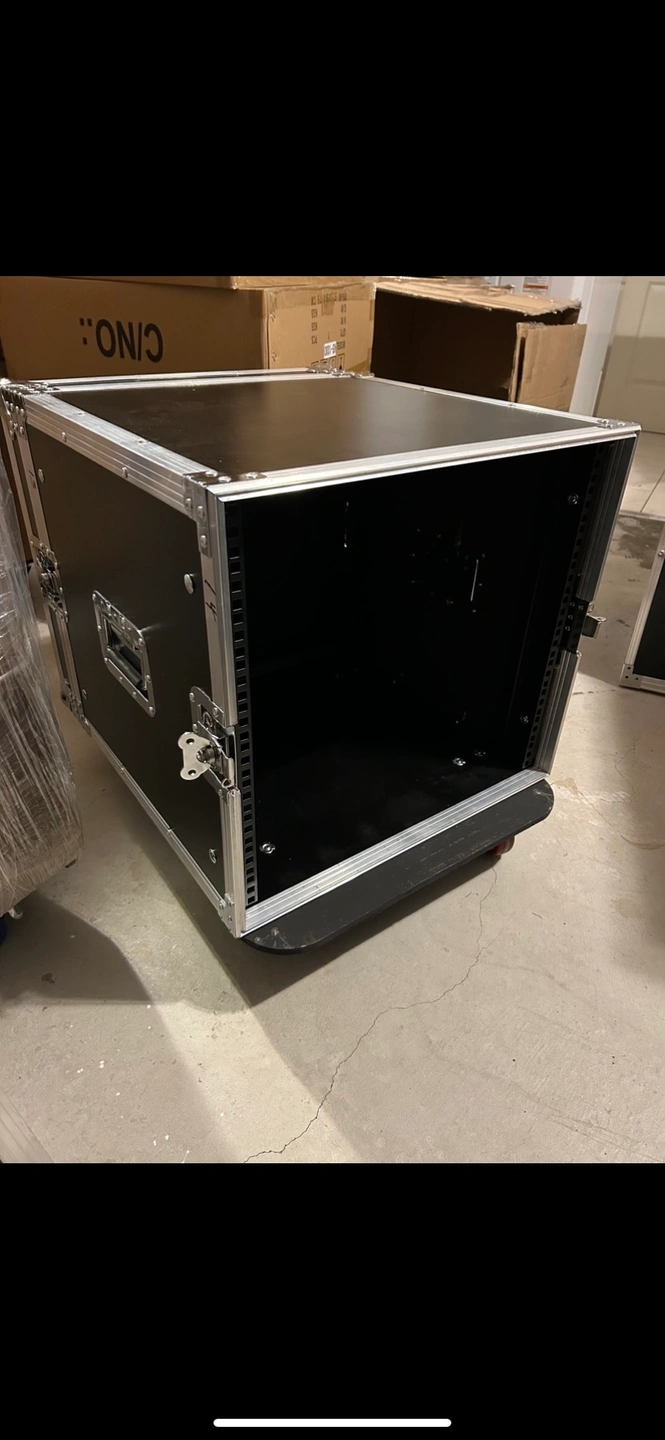 New! Never used! 10U rack space with 21” depth(with lids) Removable front and rear covers provide easy and maximum access to rack rails inside the case Aluminum-reinforced plywood and metal corners protect your gear when you're on the go Heavy duty twist latches and rubber-gripped handles make it easy to transport Great on-site portability with side handles and casters 20x26x22” Delivery available for a small fee.