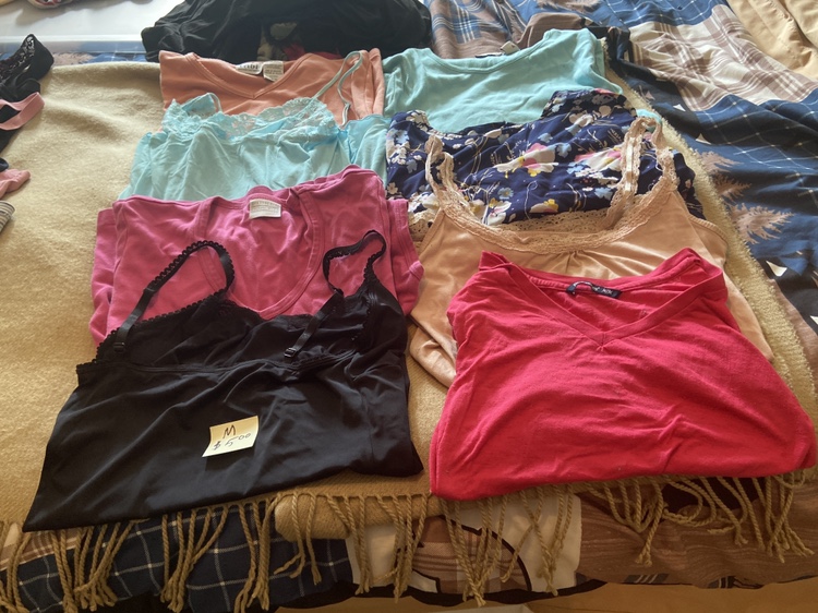 Bundle of women's tank tops and bras. Includes 10 tank tops and 3 bras. Wigs also available price and sizes in the photos