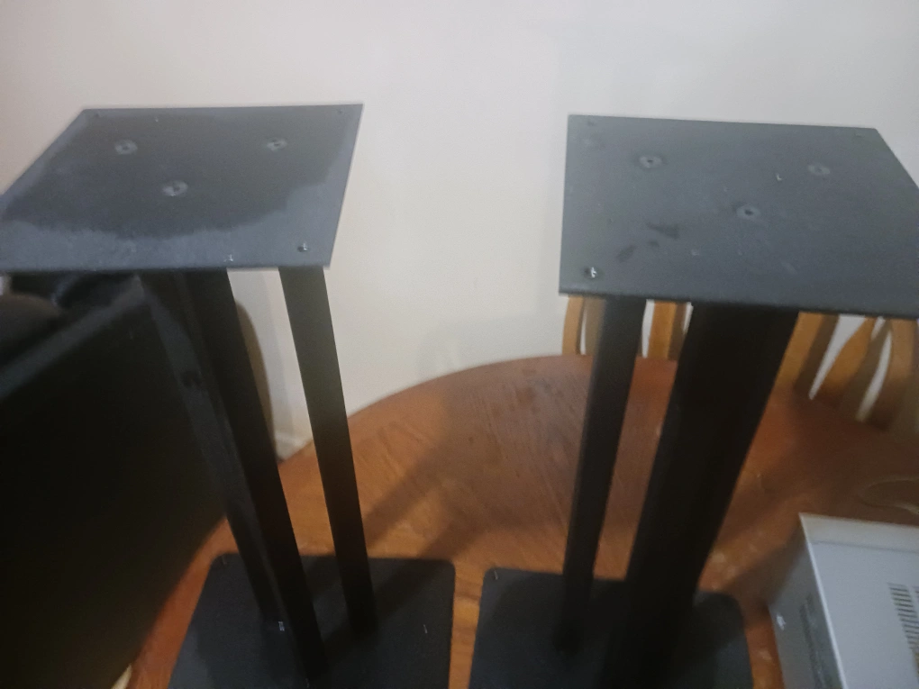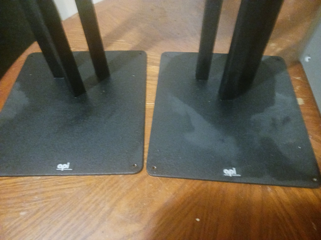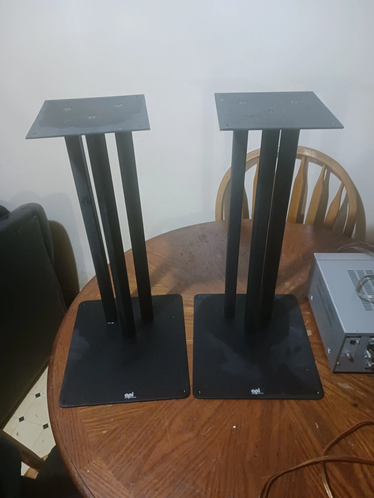 2 metal API speakers Stands. Measure 12.5" long and 11" wide and 21.5" tall. Pick up Welland. Text or email. Etransfer / cash accepted