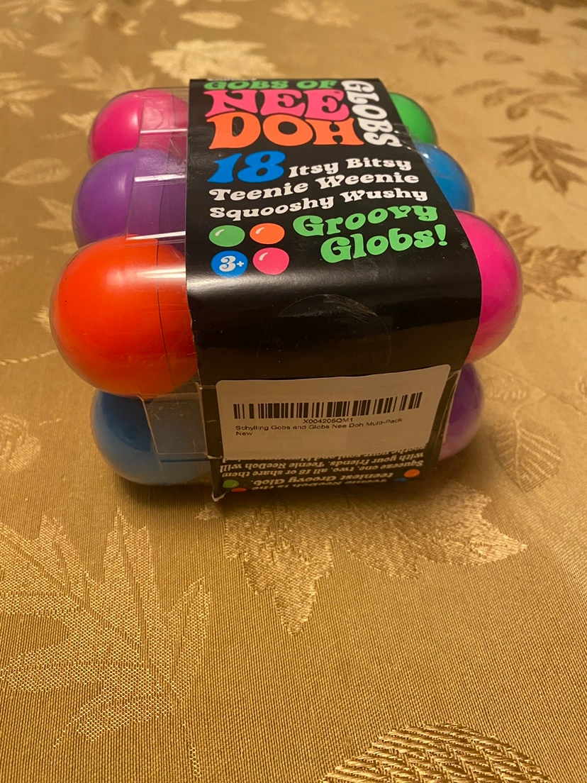 This set includes 18 colourful, squishy Nee Doh globs. New in packaging! Pick up at Bathurst and Lawrence Offers welcome 🤗 Get groovy with a whole bunch of Teenie Nee Doh to squish and squeeze! Gobs of Globs is a pack of 18 teenie weenie groovy globs in an exciting assortment of bright colors. If youre feeling stressed or on edge, reach for a Teenie Nee Doh (or a whole lot!) and give them a good squeeze, squish, pull, or smush. It will soothe your soul and get you feeling far-out fast! Ages 3 +.