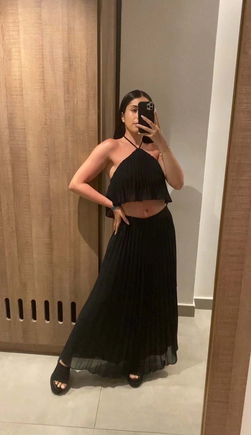 •Size small •Only worn once - practically brand new •Skirt has a back zip - no stretch •Top & skirt have lining