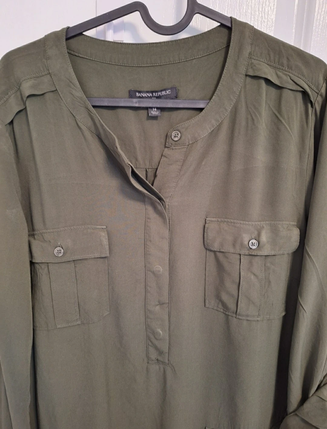 *IF AD IS UP IT'S AVAILABLE, PLEASE CONTACT ME ONLY TO PICK UP* Stylish looking shirt dress from Banana Republic. Just used a few times, looks new! Can be worn full sleeve or sleeve rolled up, has a tag for holding sleep up. Size 14 ( medium) **Price $15.00 - FIRM** Pickup - Heartland Centre or Square one mall, weekday evenings. Very Clean smoke-free, pet-free home. Please check my other listing, lots of good stuff going cheap!