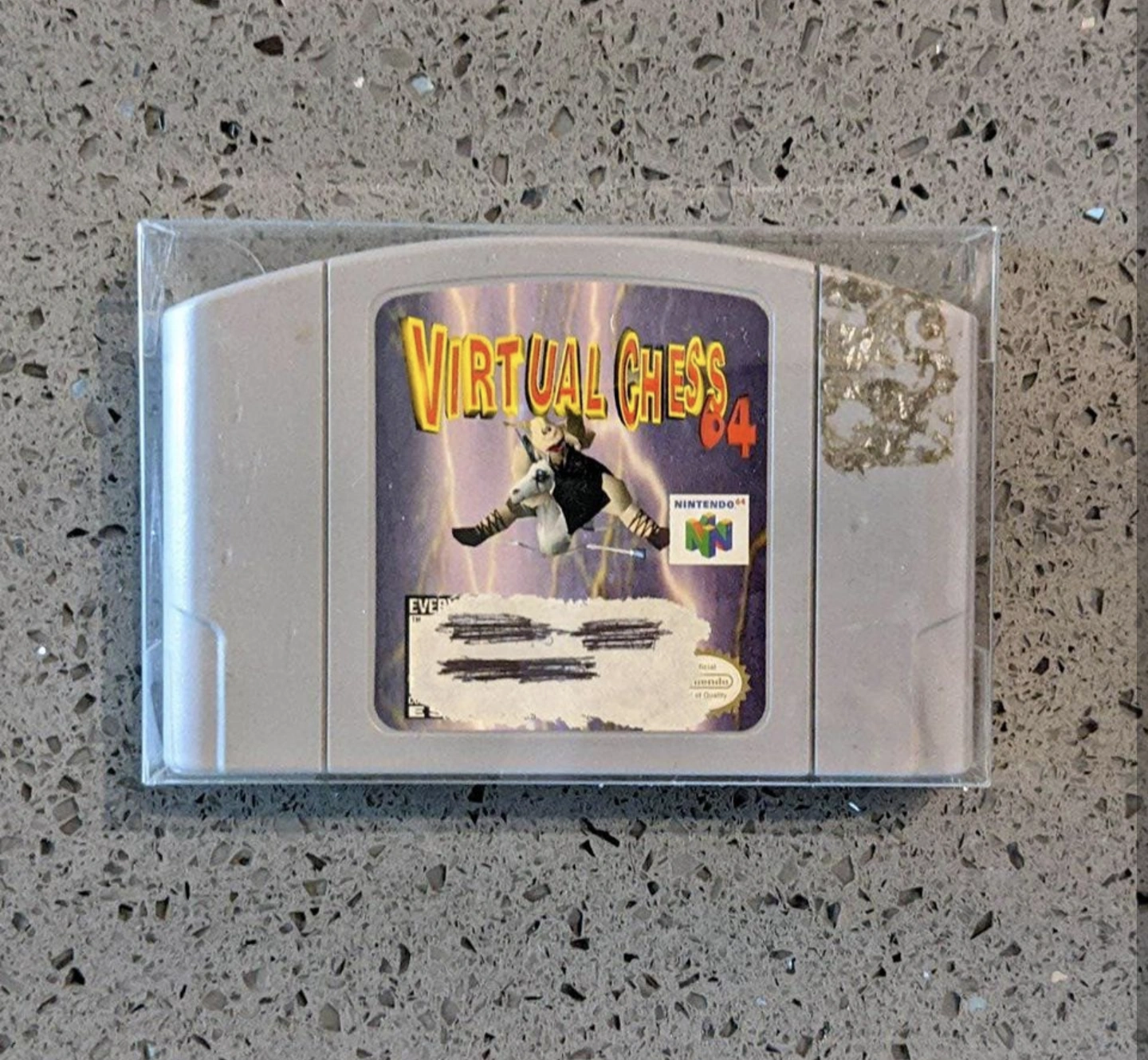 Virtual Chess 64 Nintendo64 N64 Video Game comes with Protective Plastic sleeve "Virtual Chess 64 is a chess simulation game for the Nintendo 64. It was released in 1998. It is the third and final game in the Virtual Chess series. The game features no true "completion" in the form of a goal or a score, so one could theoretically play an endless number of matches. When a piece is captured, a short animated cutscene plays back depicting the battle, as in 1988's Battle Chess."
