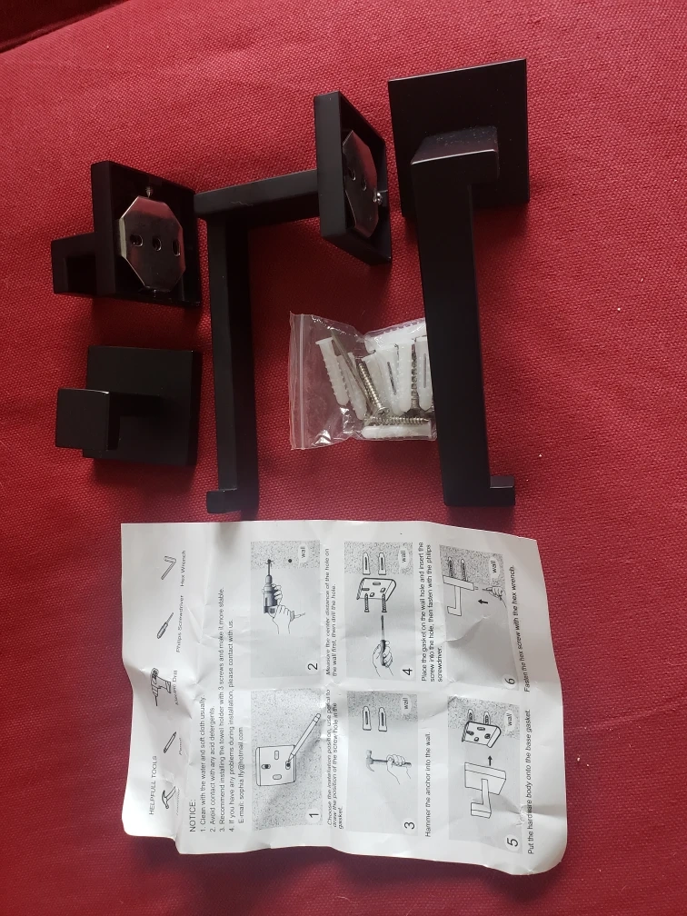 A set black hook with hardware and instructions for installation. 2 shallow & 2 deep hooks, matte black finish. They've never been installed or used. I ordered these on Amazon for $35, but I ended up not using them.