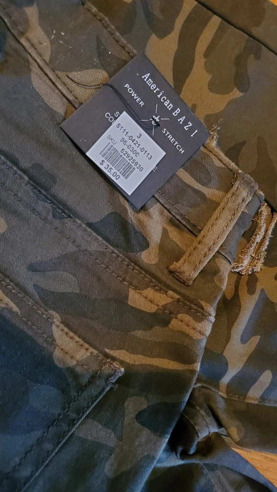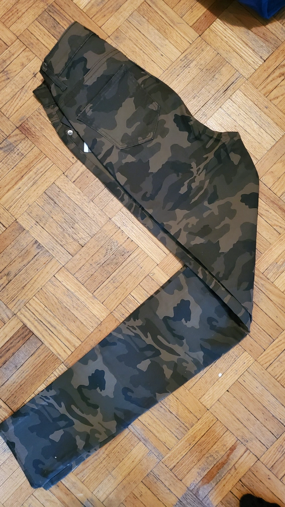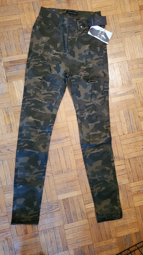 Camouflage print skinny jeans with distressing. Size 3.