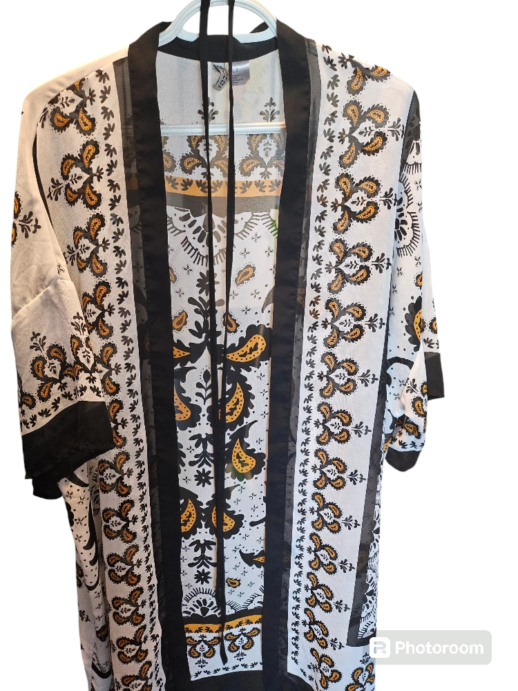 Gorgeous. lightweight, semi-sheer kimono with a paisley design. Has a thin black waist tie.