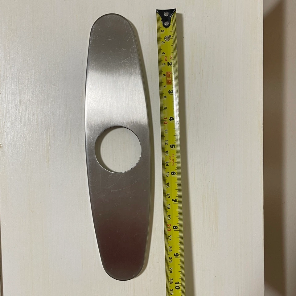 10” Brushed nickel sink faucet cover deck plate See pictures for measurements Decluttering