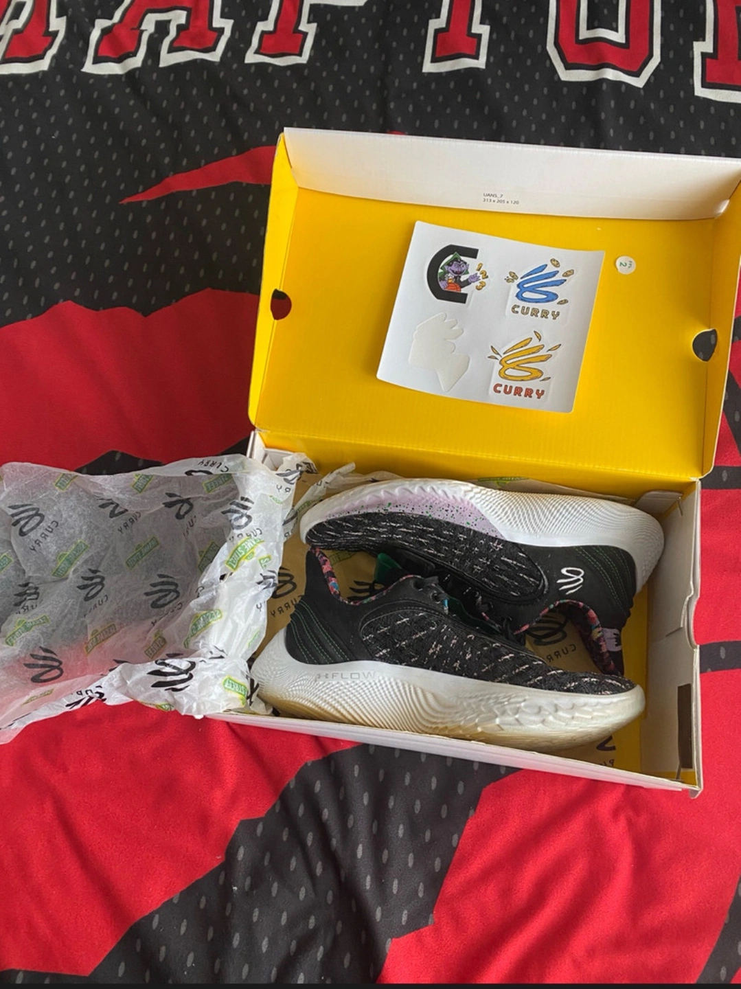 Steph Curry Flow 9 Basketball Shoes Sesame Street Series: The Count From Under Armour Comes with the box and 3 stickers Used couple of times still in very good condition. Size 7 Youth Message me for more details