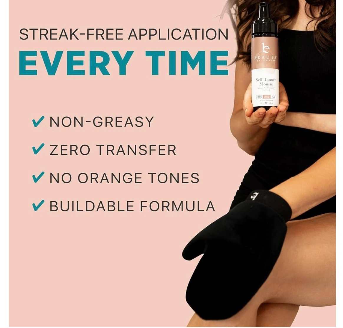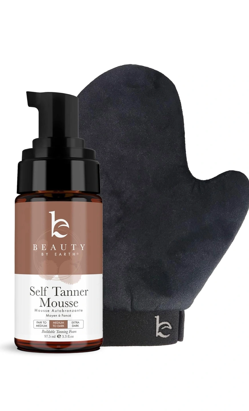 Skin tone Medium to Dark • A NATURAL, SUN-KISSED GLOW: Goodbye to orange hues and hello to a natural-looking tan with our self tan kit. Our sunless tanner in the form of tanning mousse self tanner comes in fair to medium, medium to dark, and ultra dark self tanner shades for all skin types. • EASY APPLICATION, NO STREAKS: Glide on smoothly with our self tanner mousse and glove combo, delivering a streak-free application with flawless results. Our lightweight self tanning mit is non-sticky, offering a comfortable and pleasant application experience without any residue. • QUICK TAN MOUSSE: Our clean self tanning foam absorbs and delivers a natural bronze color in just a few hours. Achieve fake tan effortlessly with our self tanning mousse and self tanner mitt. • DYE FREE, TOXIN FREE: Achieve a natural-looking tan with our self tanner mousse and glove kit, crafted using the best all-natural and organic ingredients like glycerin and hyaluronic acid for a radiant glow and hydrated skin. Our formula is free from junk, providing a safe and effective tanning solution. • CLEAN, MESS-FREE TANNING: Our self tan mousse and self tanning mitt kit ensures a flawless bronzed glow without the worry of staining your favorite clothes or sheets.