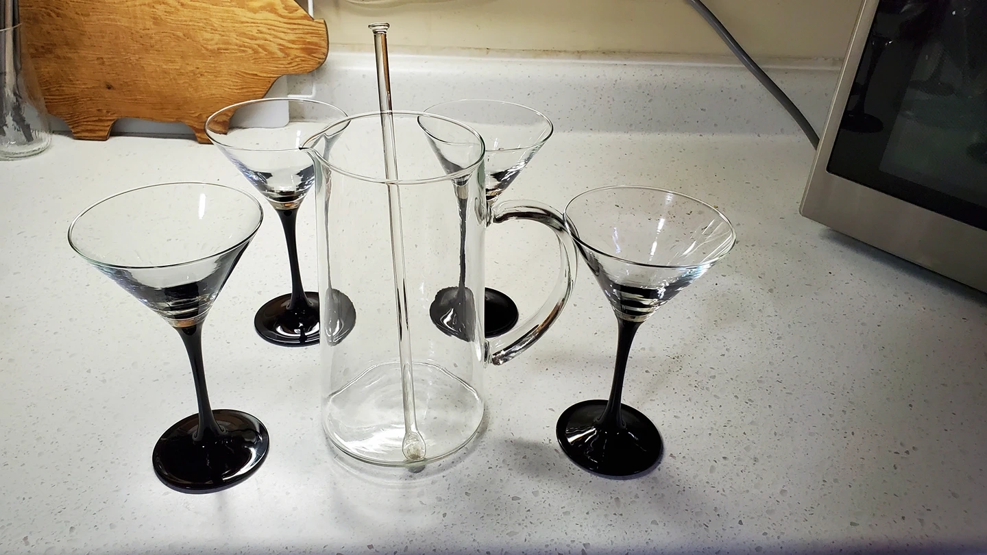 Glass Martini Set with stir stick Hardly used No chips Pickup Midtown Toronto Mt.Pleasant and Eglinton area