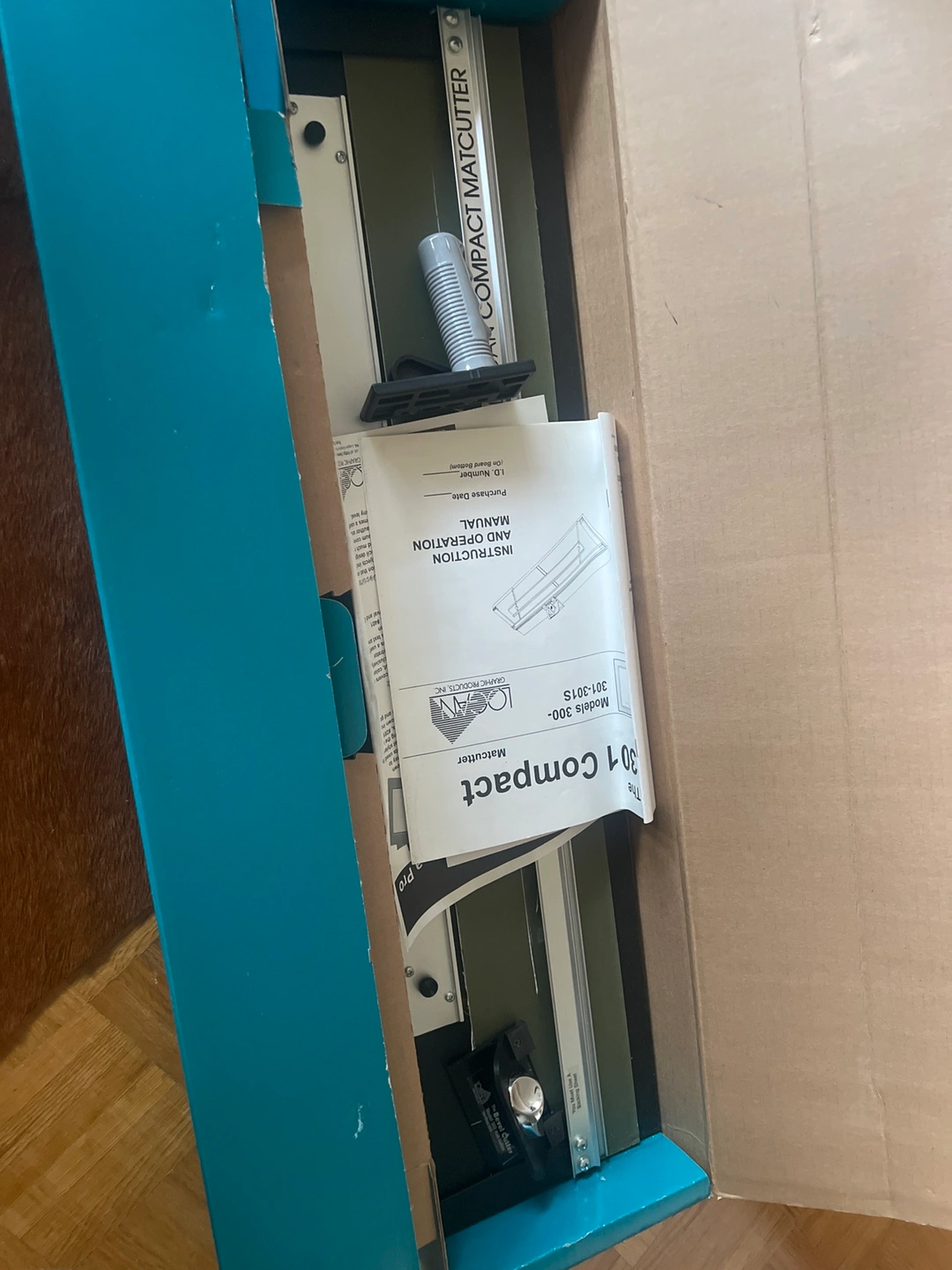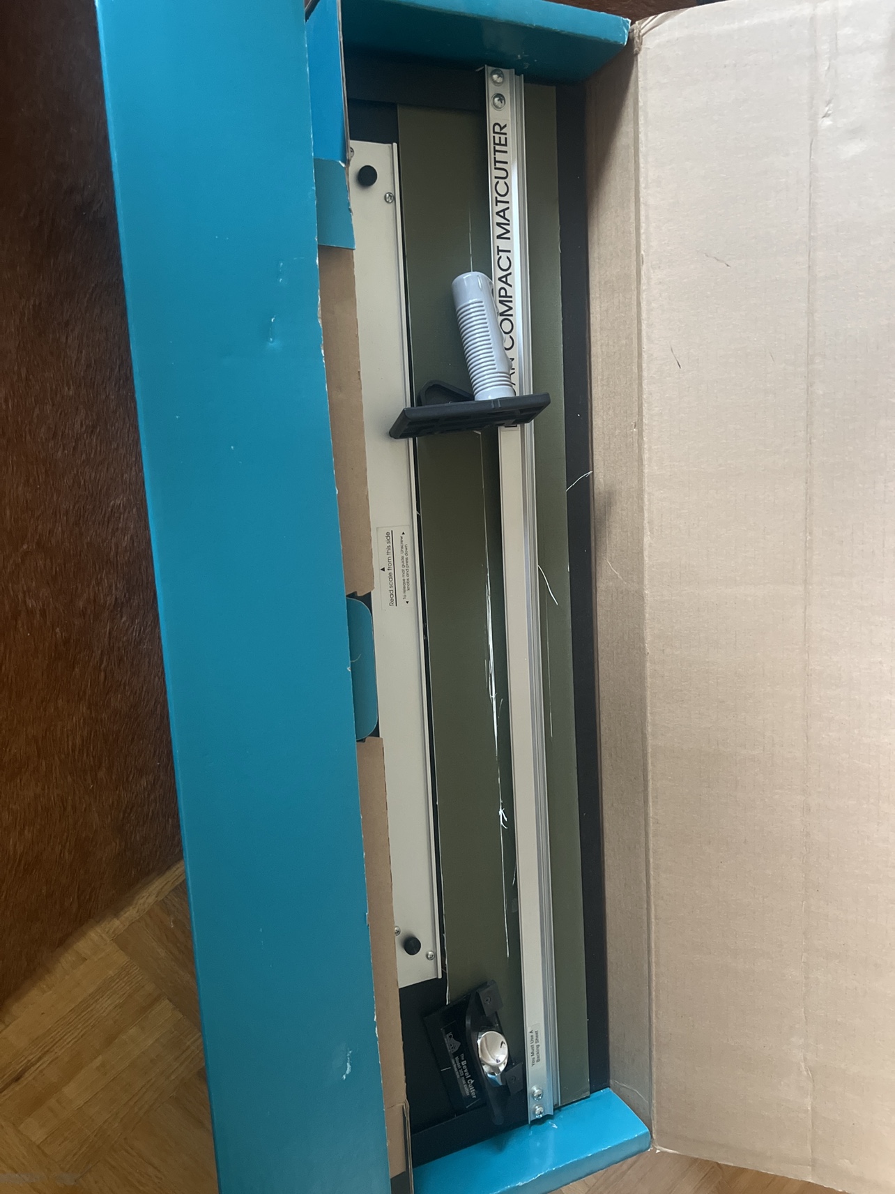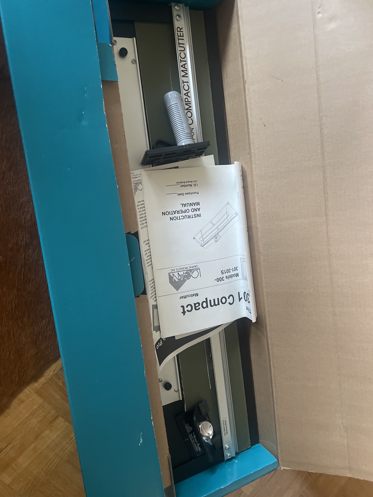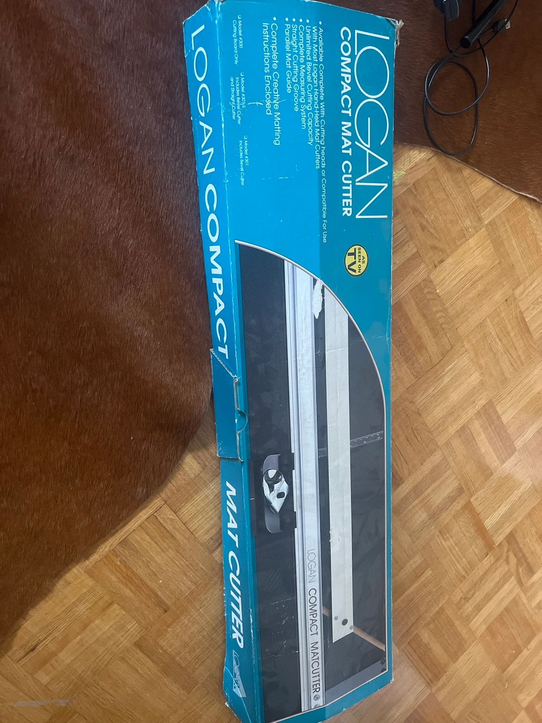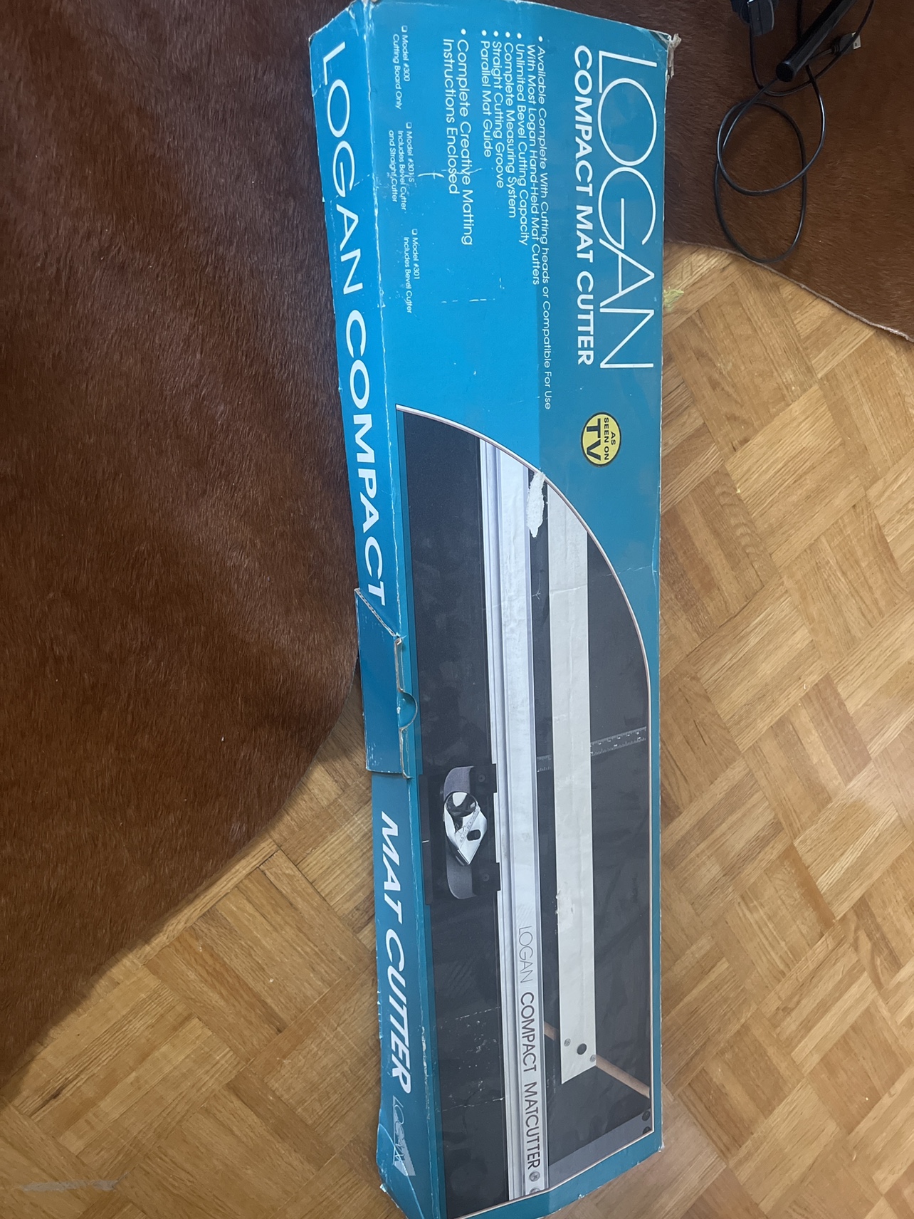 This is a Logan Compact Mat Cutter in its original box. It is in excellent condition and comes with all the original parts and instructions.