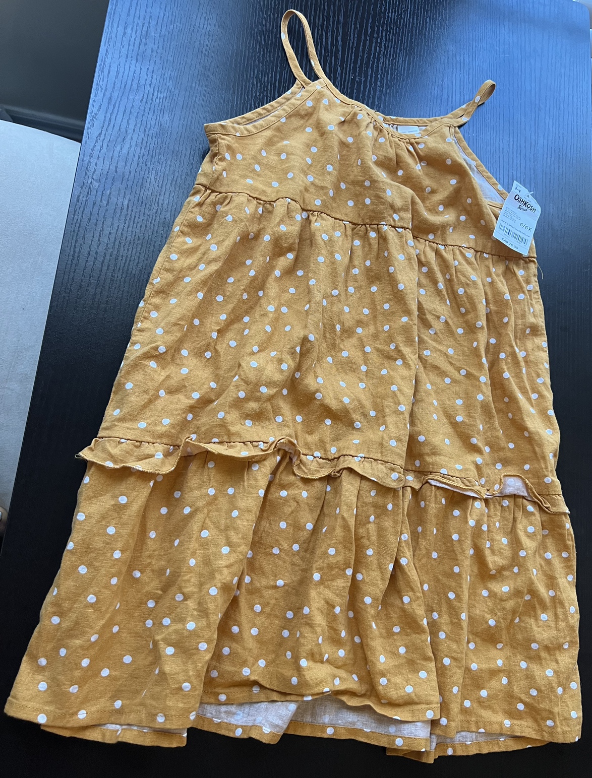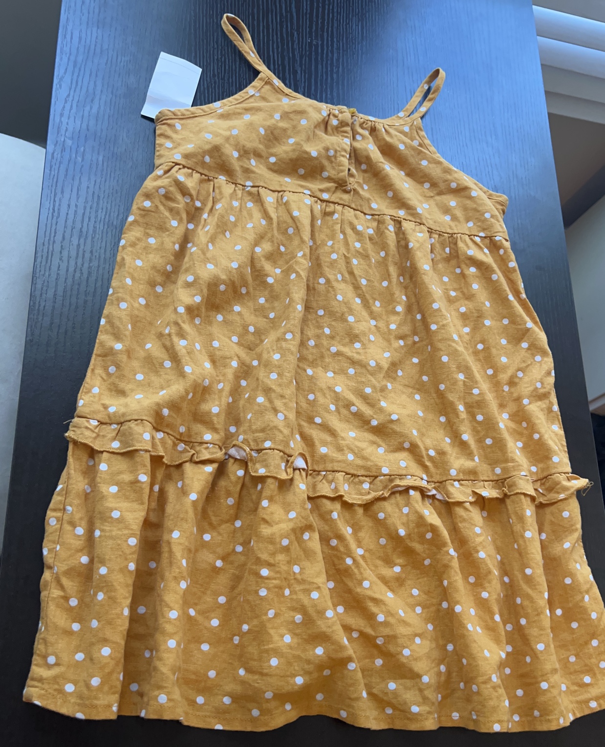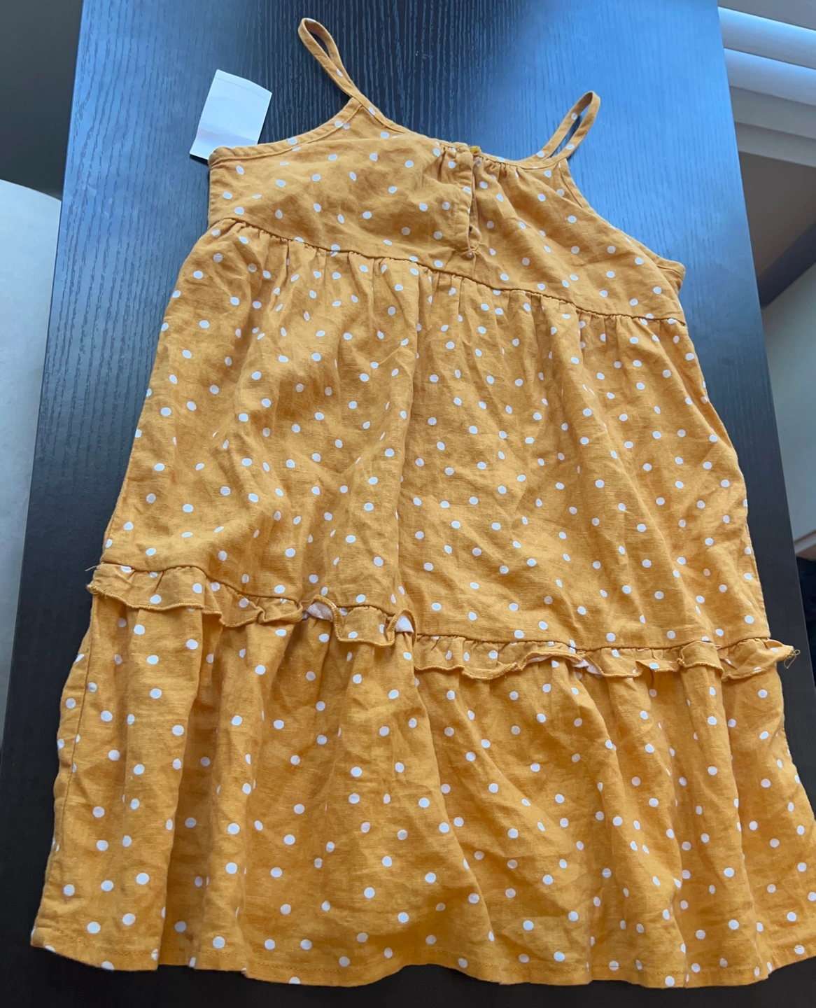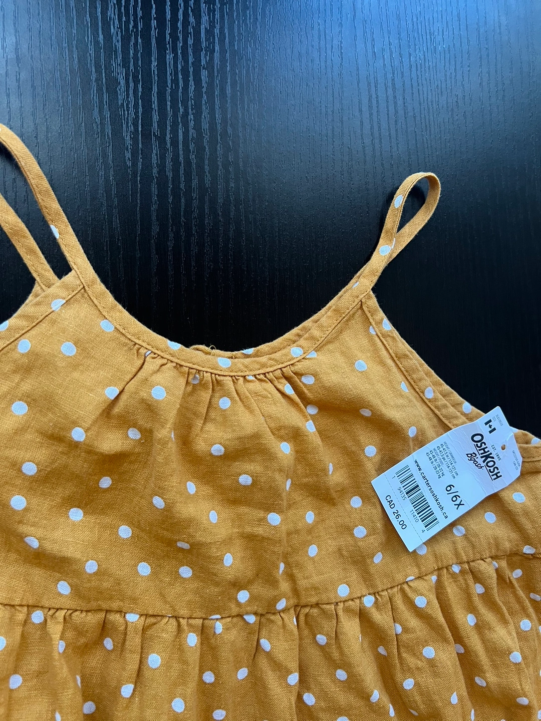 *firm price* Selling a yellow and white polka dot dress with straps for girls in size 6X. Has never been worn with tag on it. Unfortunately, my child did not have the chance to wear it and has been in the drawer.