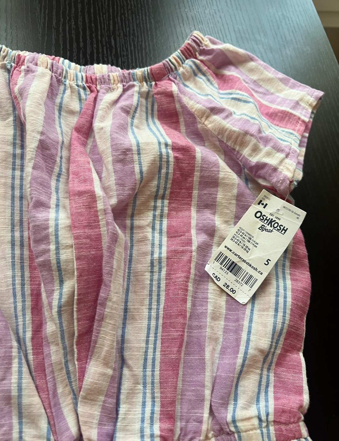 *firm price* Selling striped romper for girls in size 5. Has never been worn with tag on it. Unfortunately, my child did not get to wear it.