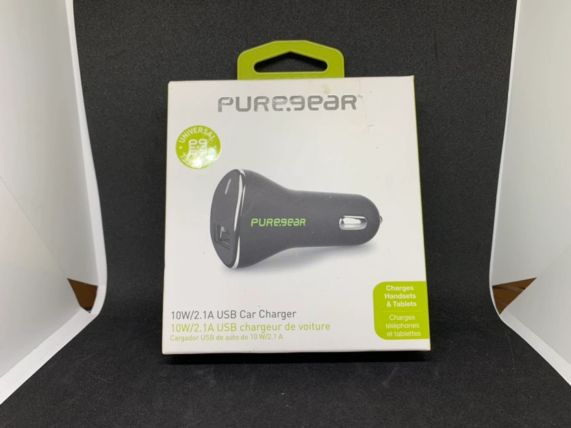 Unfortunately the box is damaged not the item is still fine. The PureGear car charger for type C devices is a reliable and convenient accessory for staying powered up on the go. With a single USB-C port, this charger is compatible with a variety of devices and offers fast and efficient charging. Simply plug it into your car's cigarette lighter for easy access while driving. Perfect for keeping your phone or other USB-C devices charged during road trips or daily commutes.