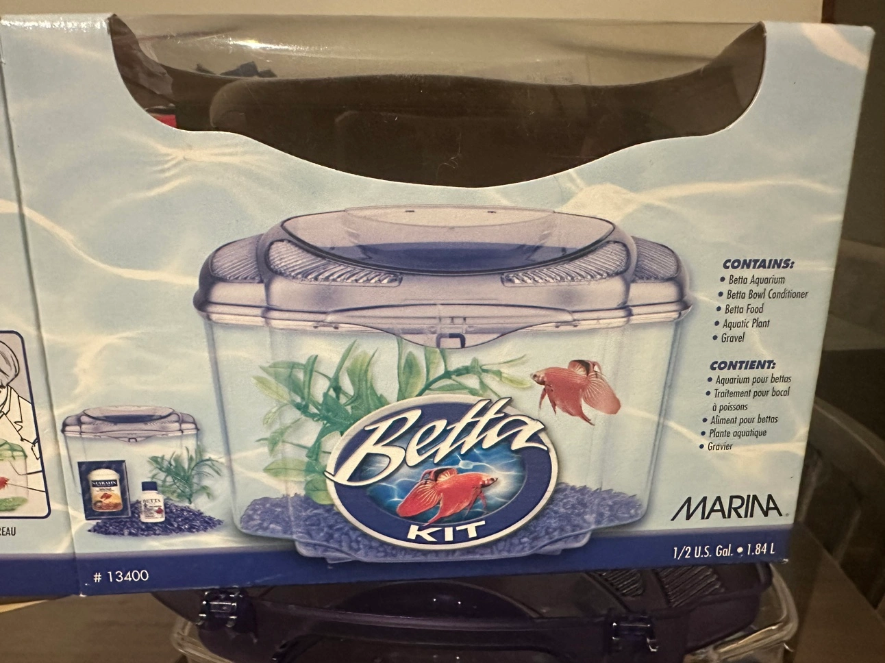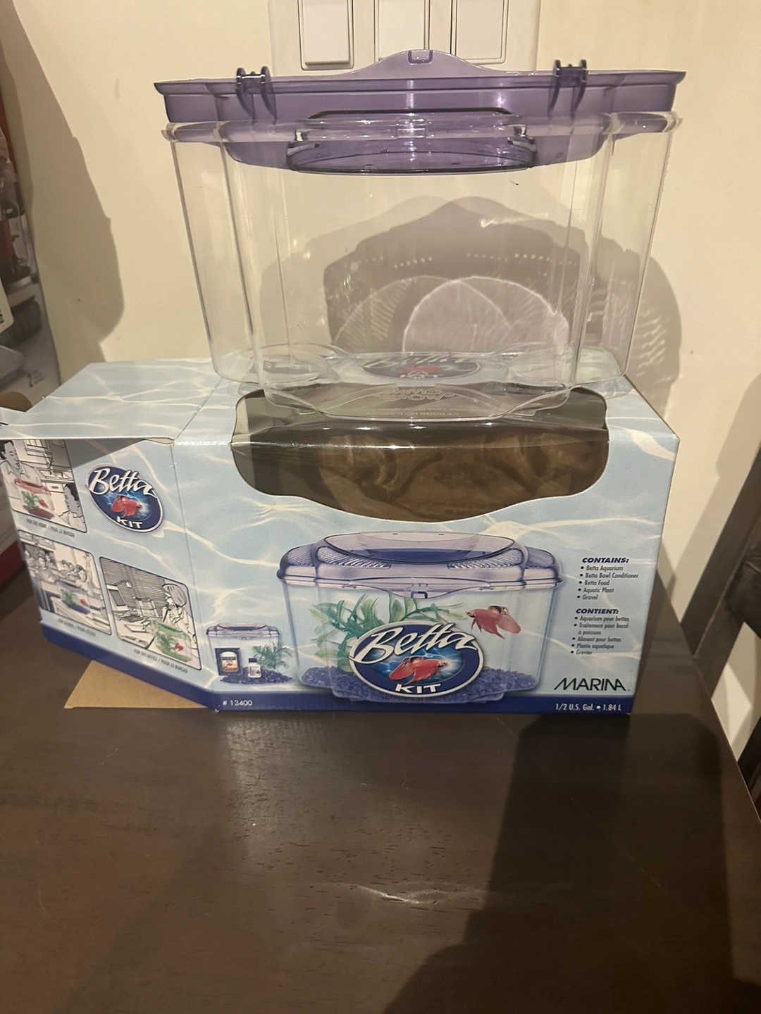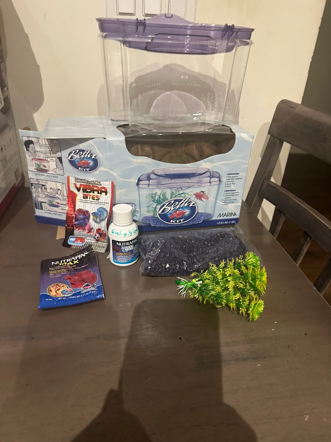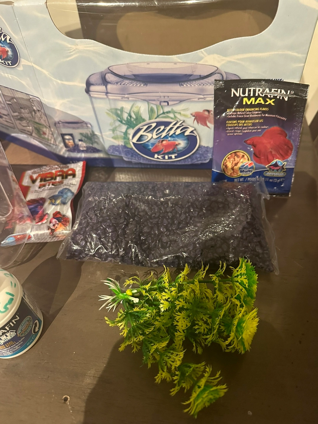 This is a complete betta fish kit that comes with a tank, gravel, a plant, and fish food and tap water conditioner . It is perfect for a beginner fish owner.