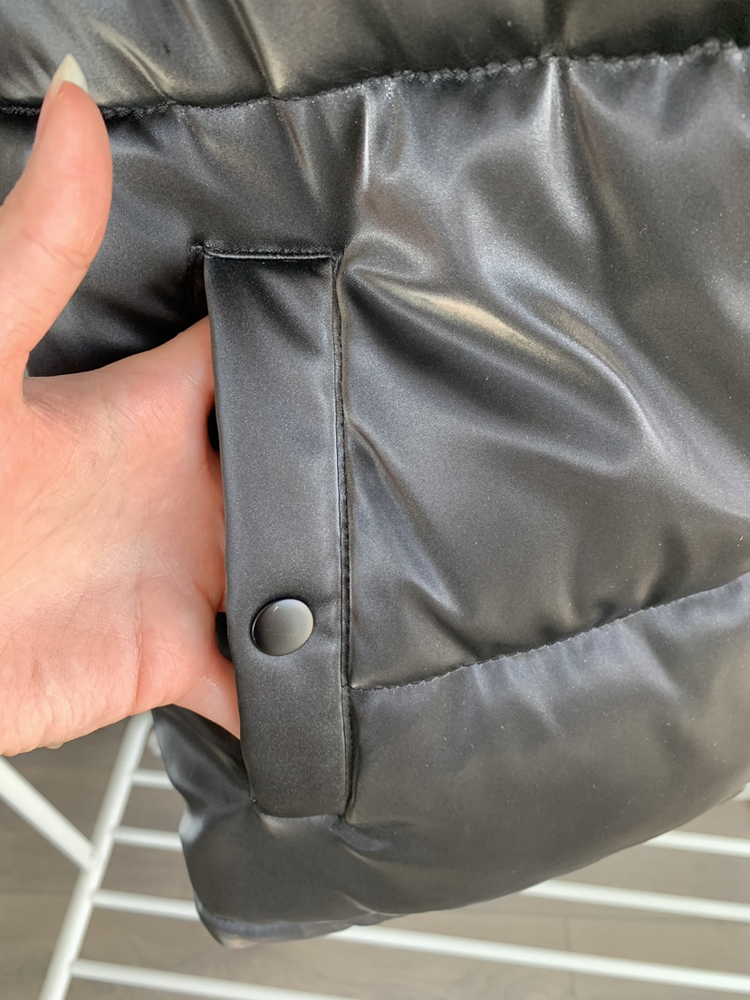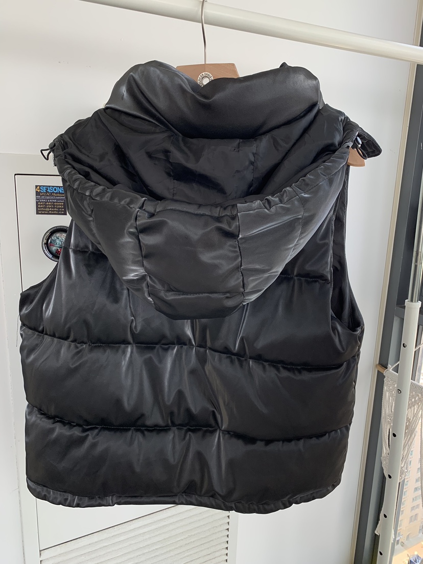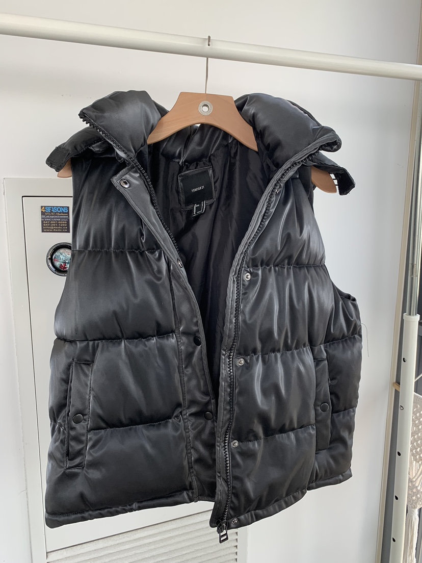 Black puffer vest with a hood. The vest is made of a shiny satin material. Removable hoodie. No flaws, just don’t wear it as much. Feel free to bundle and negotiate price. Pick up at Dundas and Jarvis