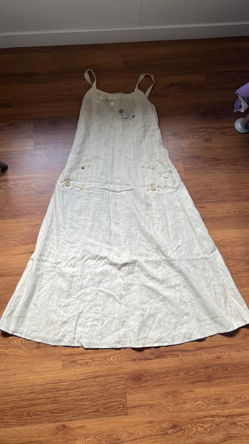 A beautiful, flowy maxi dress with button detailing. The dress has a relaxed fit and is perfect for summer. It has a scoop neckline and adjustable straps. The dress is made from a lightweight and breathable fabric. Length: 118cm