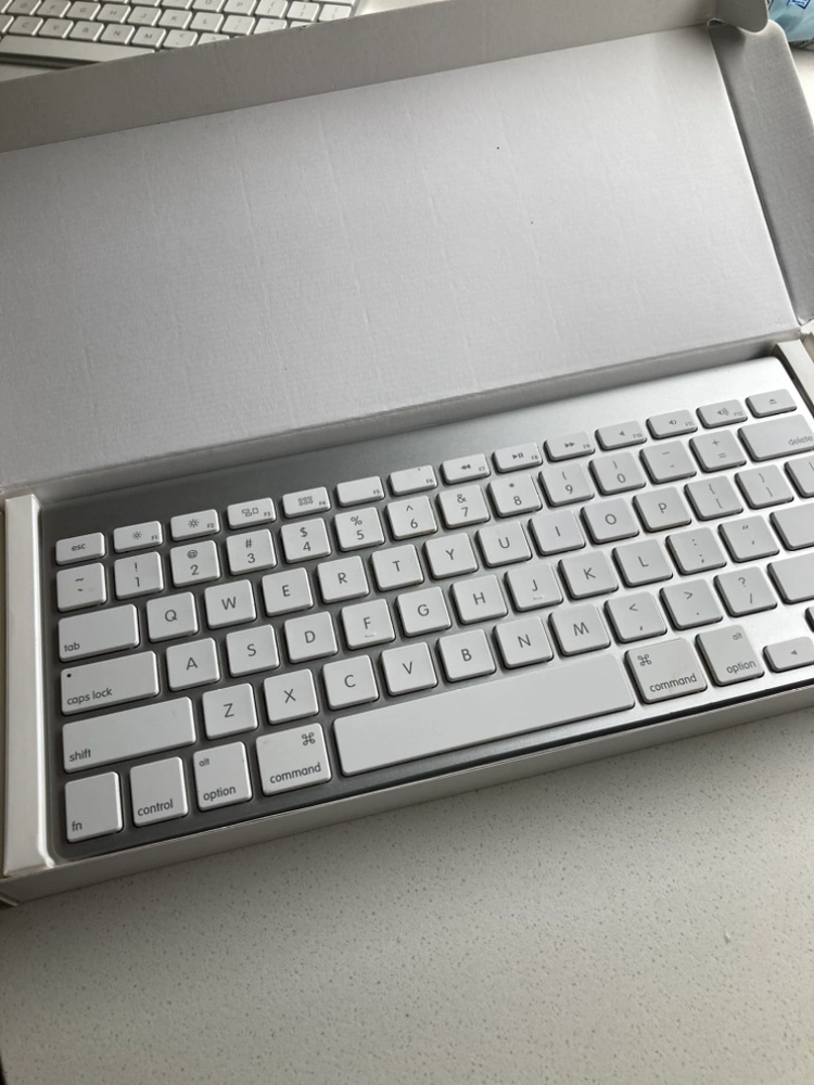 This is a wireless keyboard for Apple computers. It is in excellent condition and works perfectly, was barely used as I switched early to a Magic Keyboard. Not rechargeable. Runs on two AA batteries. Available for pickup, or I can also meet downtown as needed. 🌺