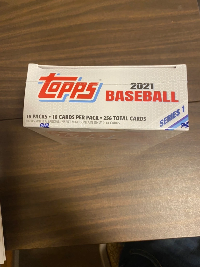 This is a factory sealed Mega box of 2021 Topps Series 1 Baseball Cards . It contains 16 packs with 16 cards per pack for a total of 256 cards.