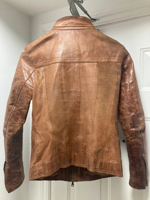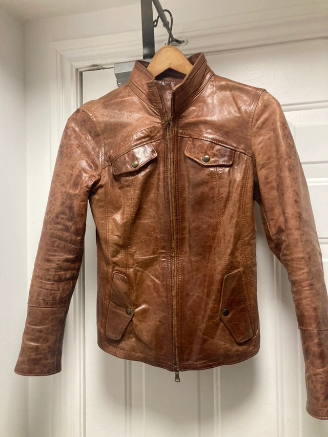 Small women’s jacket in beautiful brown Italian leather. Made in Italy. Purchased in Rome. Very good condition. Small imperfection on the back (pictured). I’m only selling it as it no longer fits. It fits like an extra-small.