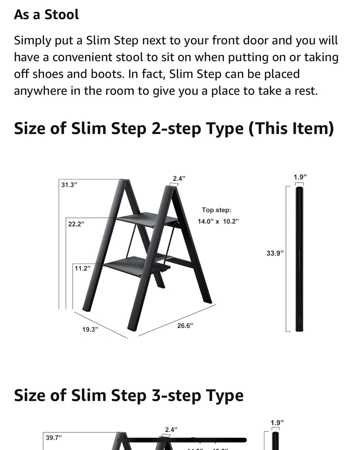 Hasegawa Ladders SJ2.0-2BK Slim Step Stepladder, Black Lucano Hasegawa 3-Step Ladder Made of both aluminum and steel make it durable without being heavy. (It only weighs about 10 pounds, but supports up to 220lb.) When folded, the ladder takes up minimal space and stands upright on its own Safety latch Non-skid feet Grooved treads Safety bar Made in Japan Pickup 150 and 69 avenue