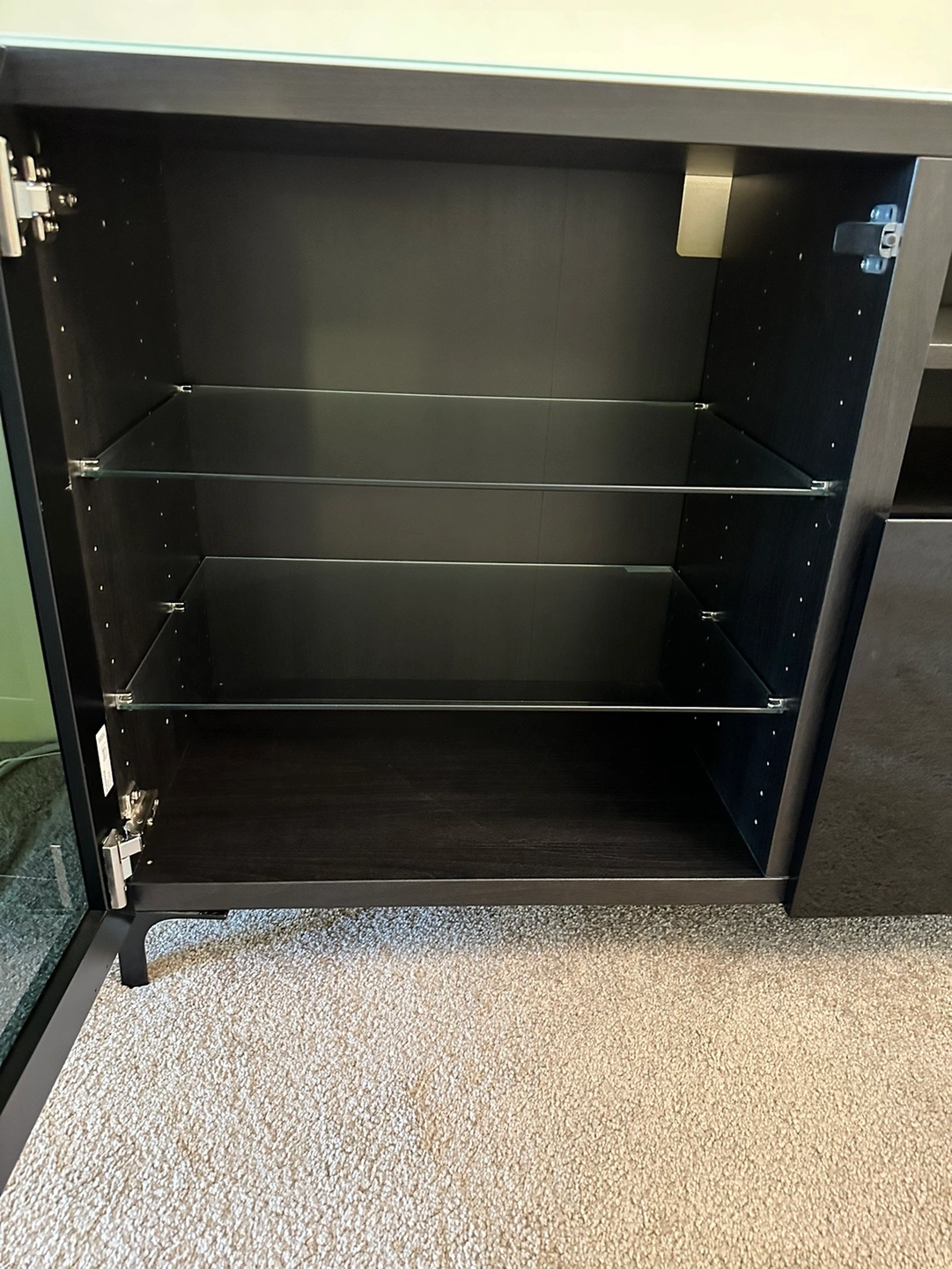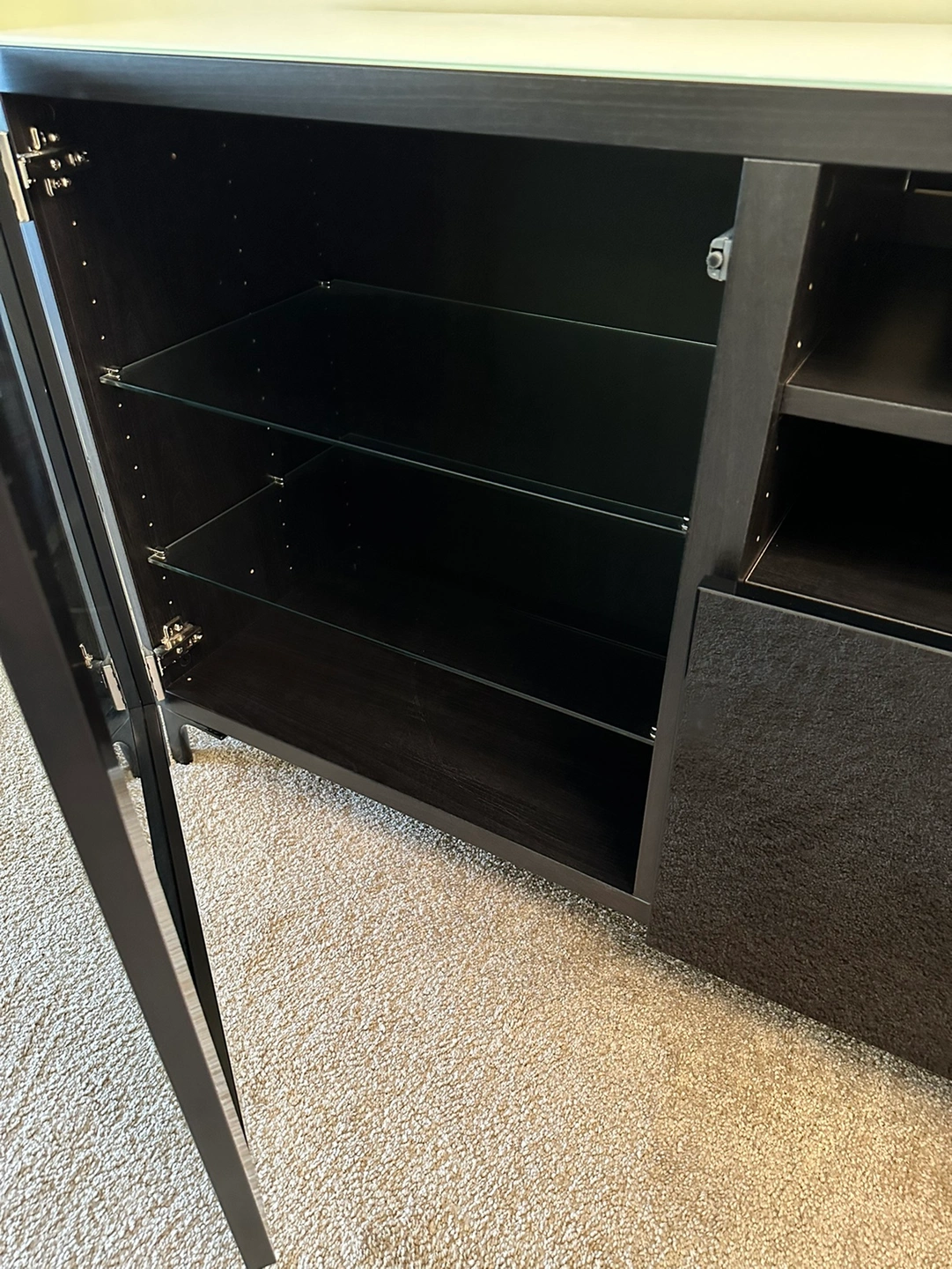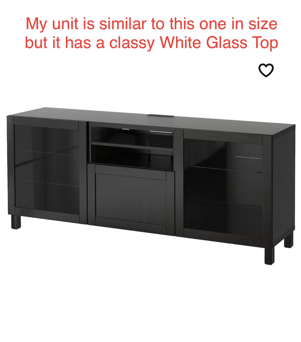 🔴 Pick Up from Burnaby. Canada Way & Royal Oak LIKE NEW Has a beautiful white glass top. Can be used as Cabinet or TV stand BESTÅ Caninet / TV bench Comes with a white glass top ! *** ikea doesn't make the glass top for these units anymore. 🔆 Product details: -Black brown cabinet -Drawer push open -Cabinets black brown -White Glass top that easily add a personal classy look. -MEASUREMENTS are in 4th picture. Contemporary good looks with practical function. You get lots of storage space and relief from cables that tend to get messy and gather dust. - Easy to keep the cords from your TV and other devices out of sight but close at hand, as there are several cord outlets at the back of the TV bench. - The drawer has an integrated push-opener, so you don’t need handles or knobs and it will open with just a light push. - The shelves are adjustable so you can customize your storage as needed. - Beautiful white glass top https://www.ikea.com/ca/en/p/besta-tv-bench-with-drawers-black-brown-hanviken-stubbarp-black-brown-clear-glass-s49568010/ 🔴 Pick Up from Burnaby. Canada Way & Royal Oak 🟡 Please check out my other listings, you may want to bundle with other stuff Thank you.