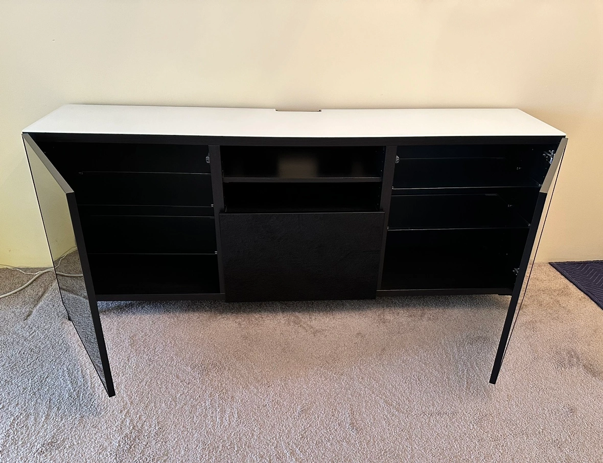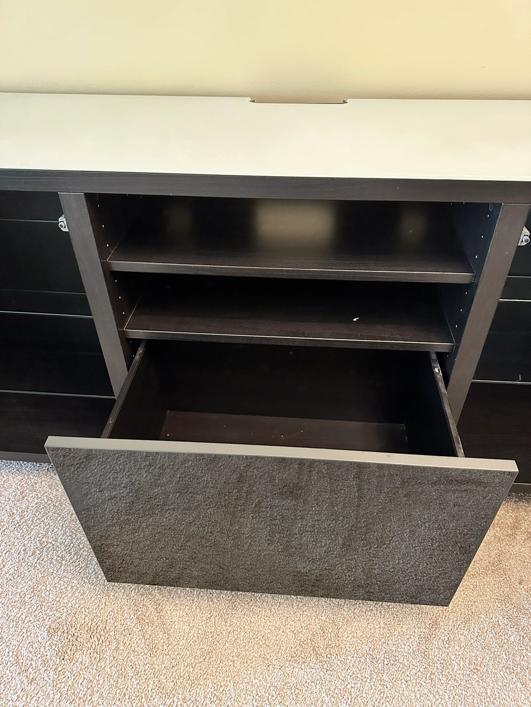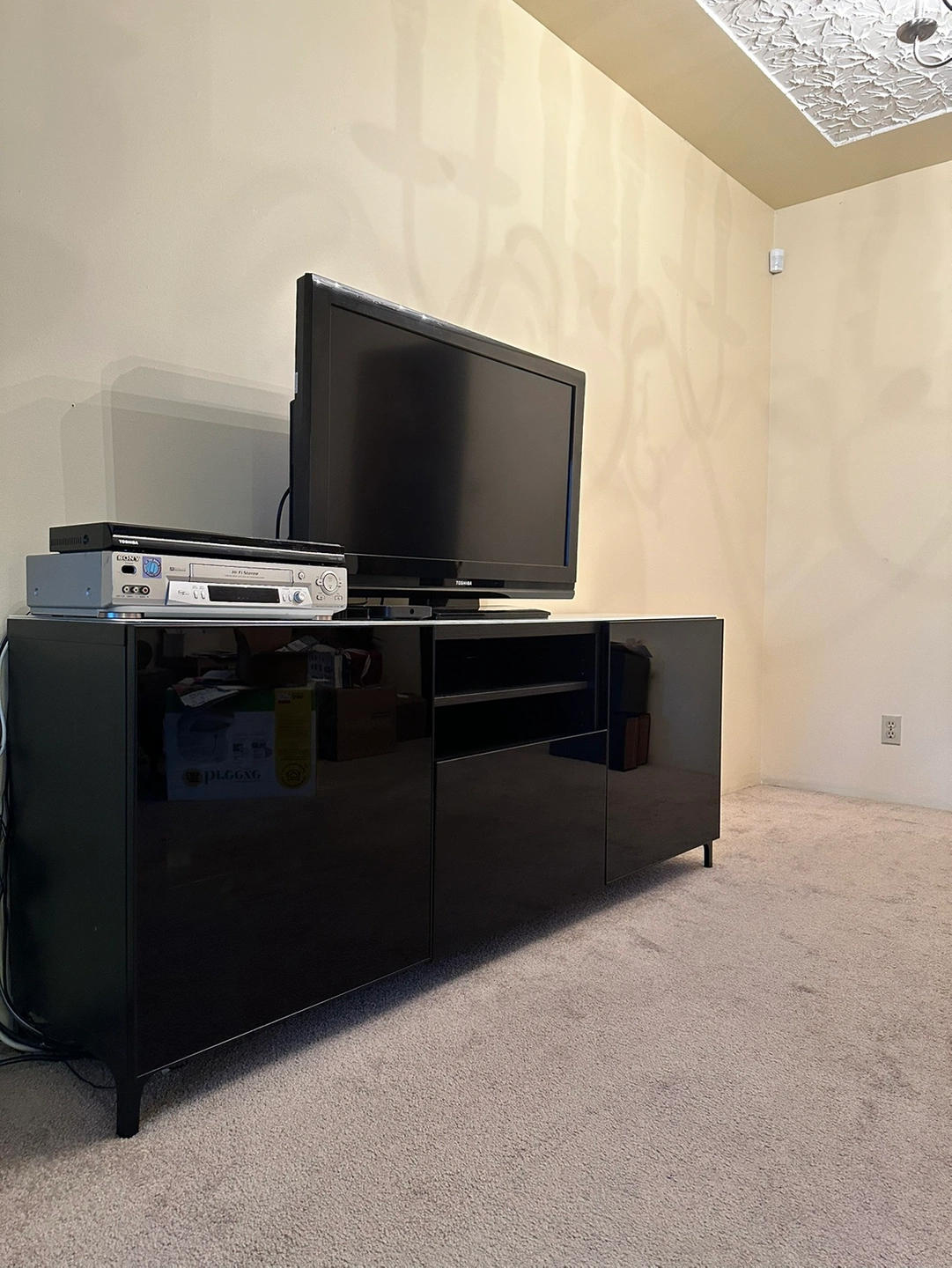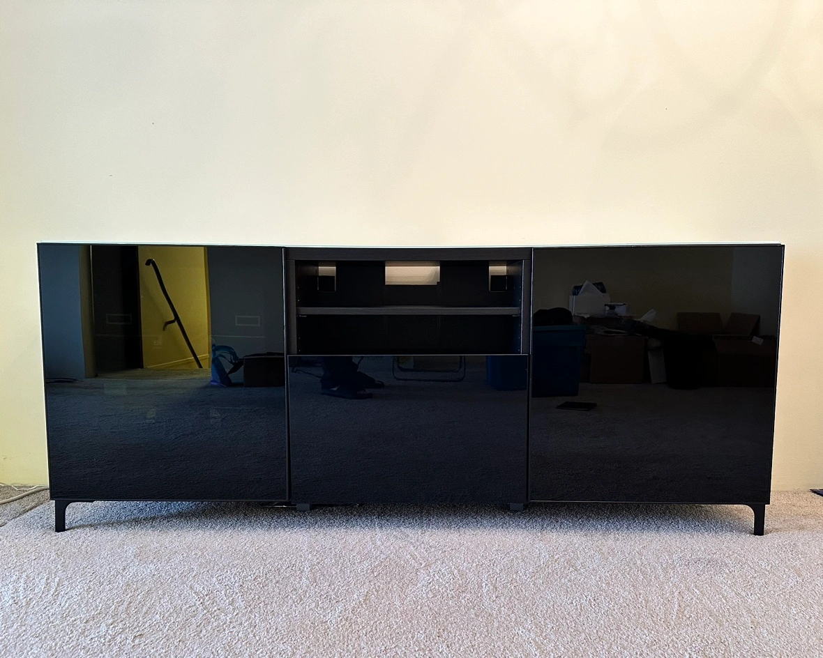 🔴 Pick Up from Burnaby. Canada Way & Royal Oak LIKE NEW Has a beautiful white glass top. Can be used as Cabinet or TV stand BESTÅ Caninet / TV bench Comes with a white glass top ! *** ikea doesn't make the glass top for these units anymore. 🔆 Product details: -Black brown cabinet -Drawer push open -Cabinets black brown -White Glass top that easily add a personal classy look. -MEASUREMENTS are in 4th picture. Contemporary good looks with practical function. You get lots of storage space and relief from cables that tend to get messy and gather dust. - Easy to keep the cords from your TV and other devices out of sight but close at hand, as there are several cord outlets at the back of the TV bench. - The drawer has an integrated push-opener, so you don’t need handles or knobs and it will open with just a light push. - The shelves are adjustable so you can customize your storage as needed. - Beautiful white glass top https://www.ikea.com/ca/en/p/besta-tv-bench-with-drawers-black-brown-hanviken-stubbarp-black-brown-clear-glass-s49568010/ 🔴 Pick Up from Burnaby. Canada Way & Royal Oak 🟡 Please check out my other listings, you may want to bundle with other stuff Thank you.