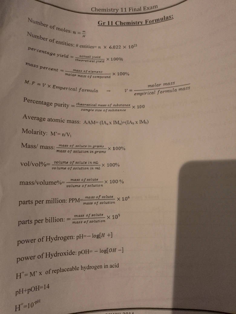 The formulas guide to apply them in solving eqauations like calculating the mass and number of moles. π I'm giving it away as it could help someone to study instead of sitting in my room.