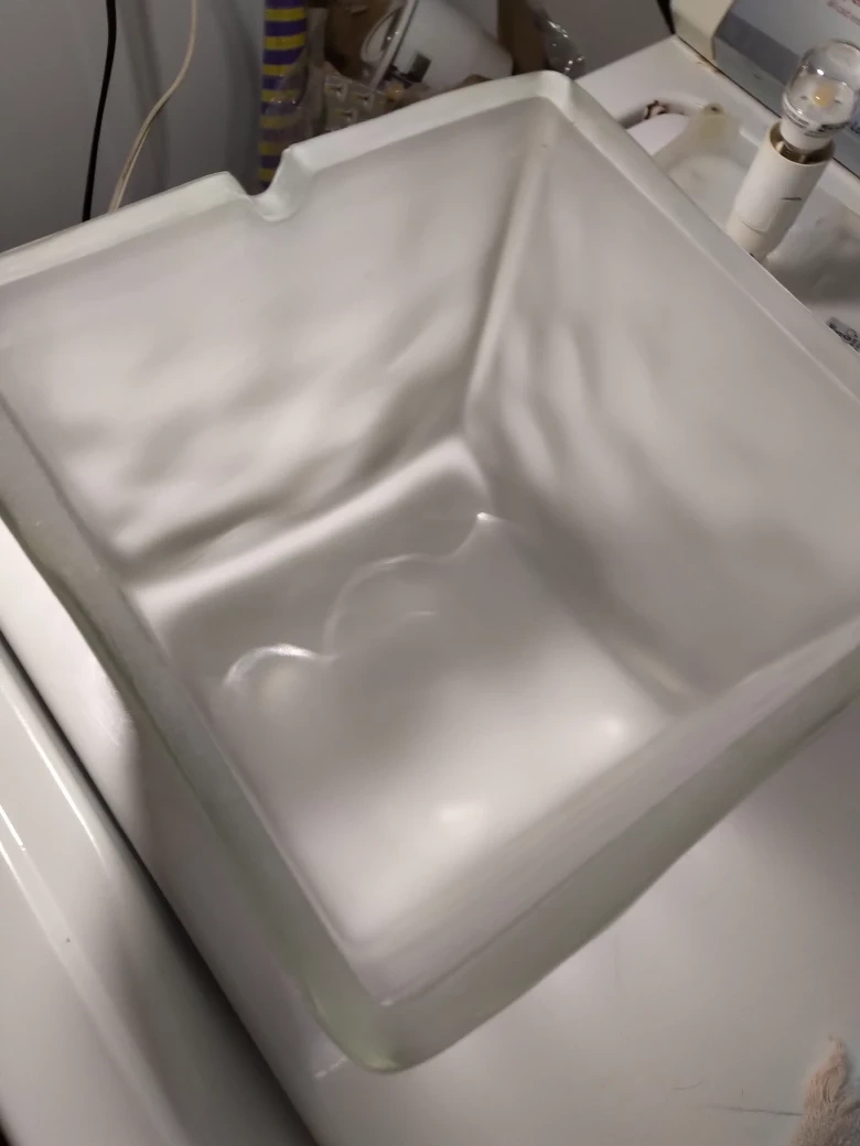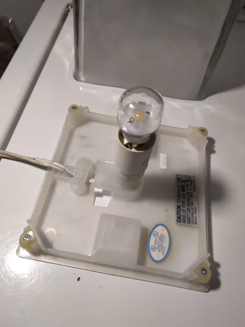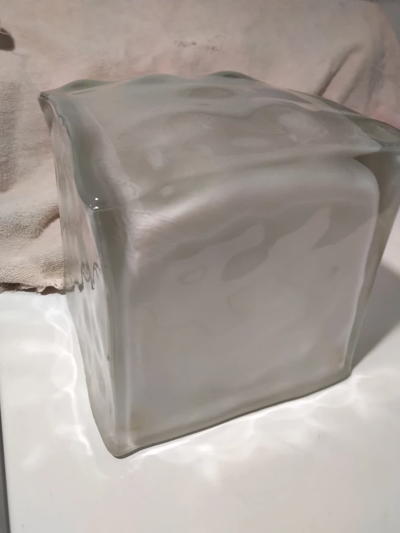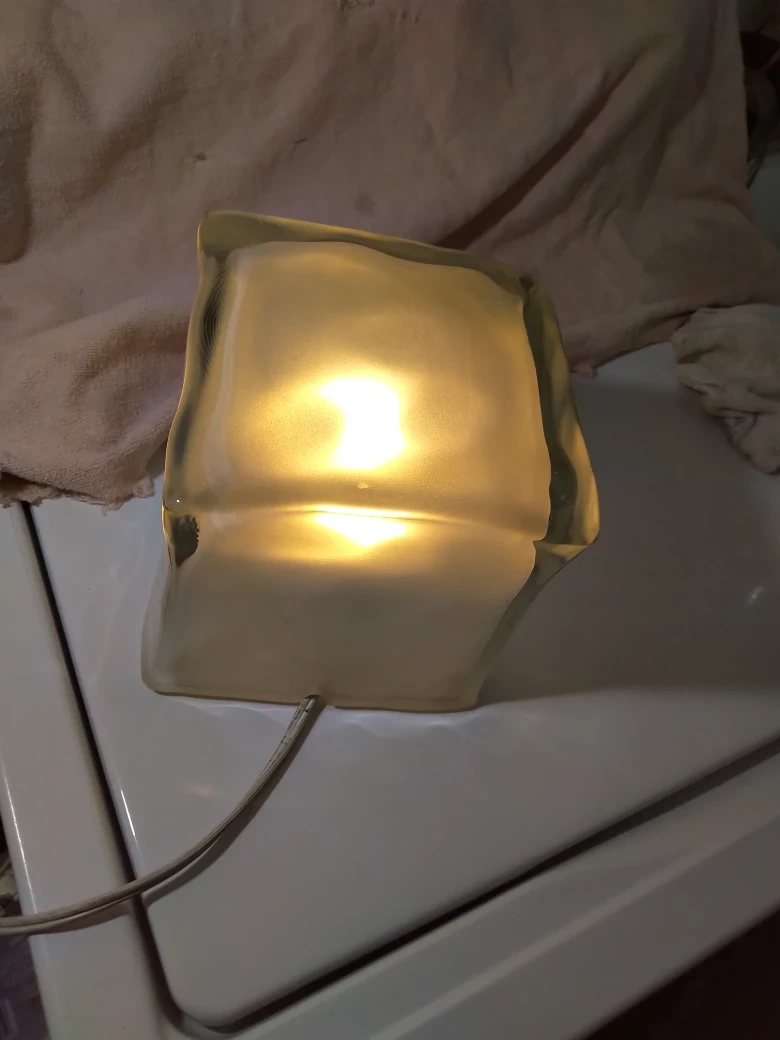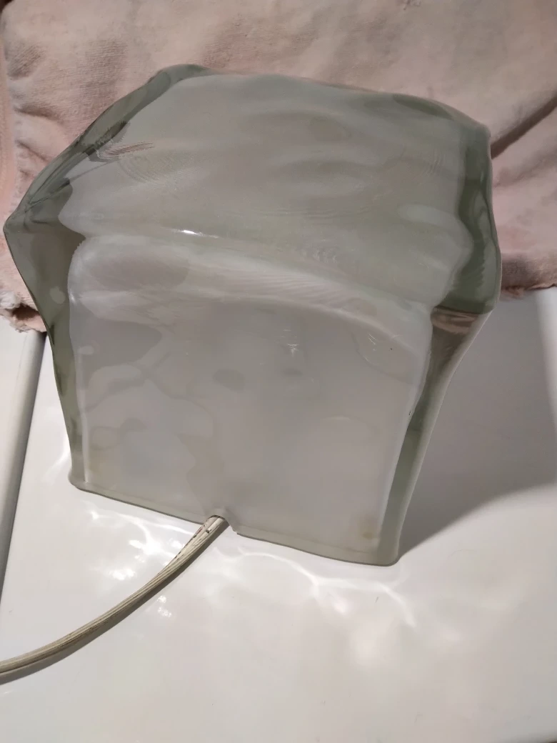 rare and iconic, the "iviken" aka ice cube lamp from ikea. Released in the 1990s, this discontinued table lamp measures in at 6" x 6" x 6". it has a bit of weight to it because it features a thick glass that is polished on the outside and frosted on the inside, giving it the distinct look of an ice cube. this is the north american version, no need to get a converter. it can plug directly into the wall. It accepts up to a 25w bulb, E14.