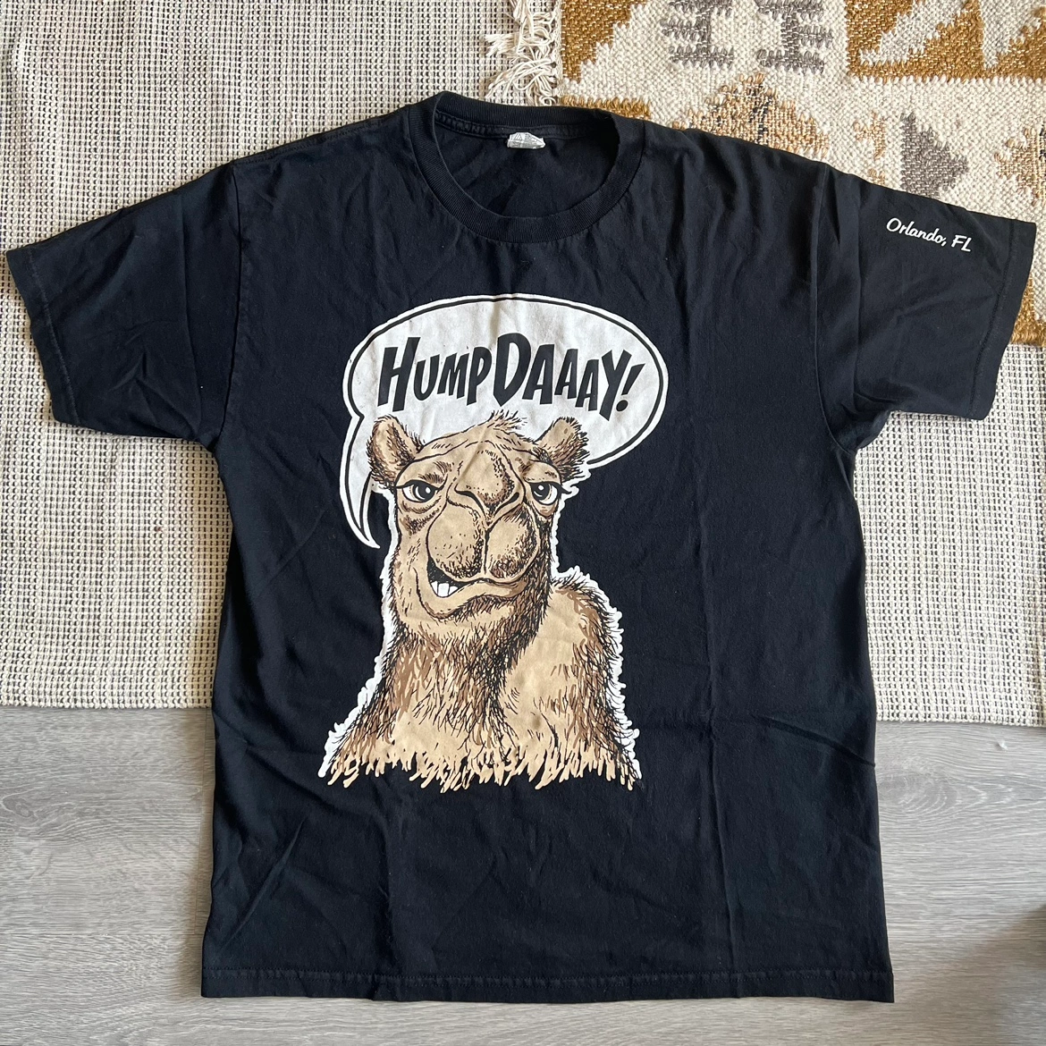 Black T-shirt with a camel and the phrase "Humpdaay!" printed on it. The shirt says "Orlando, FL" on the sleeve. CONDITION: LIKE NEW SIZE: MENS L ** if listing is still up the item is available ALL SALES FINAL SERIOUS INQUIRES ONLY PLEASE :) PICKUP ONLY - PRIORITY TO QUICK PICKUP AND/OR BUNDLES LOCATION: DOWNTOWN ( RICHMOND/ GEORGE ST) Check my listings for more and follow for new items almost DAILY😀!!!