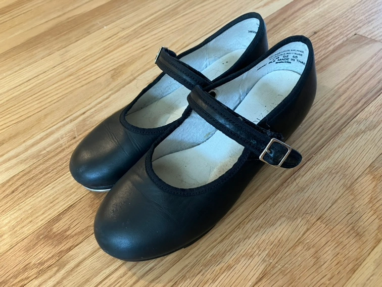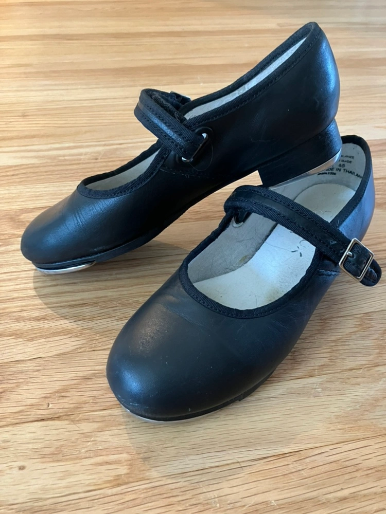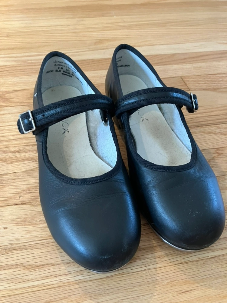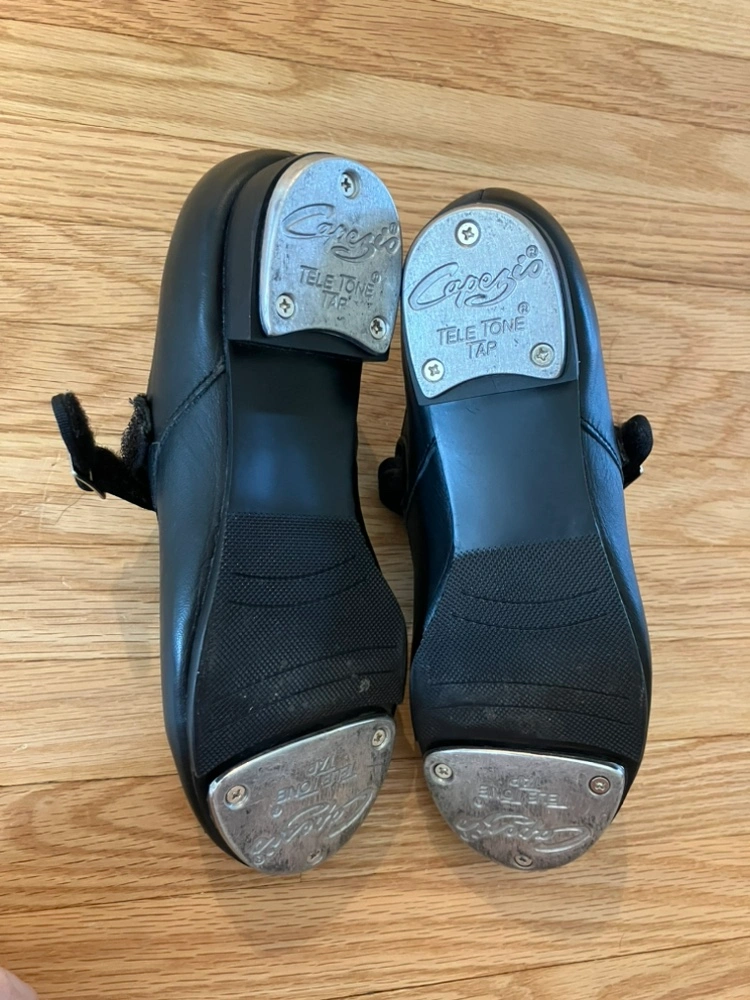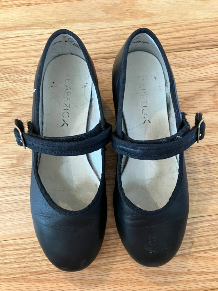 In good used condition! Just in time for the start of new dance season. Brand Capezio Size Kids’ 2 Colour Black Black leather tap shoes with velcro buckle for easy on and off. No longer fit my daughter, now too small. EASY PORCH PICKUP AVAILABLE.