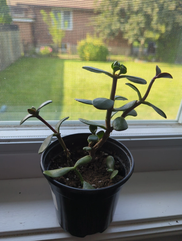 A healthy jade plant in a black pot. Four branches of different sizes that can continue to flourish into a beautiful tree or can be divided to create multiple individual plants or added to an existing indoor flower bed. Tallest branch from the bottom is about 6 inches pick up in Etobicoke or union station on certain days.