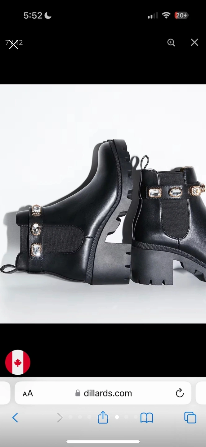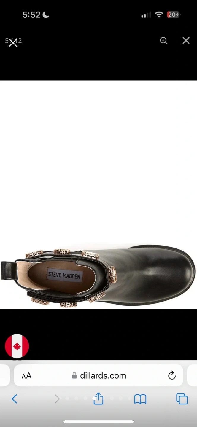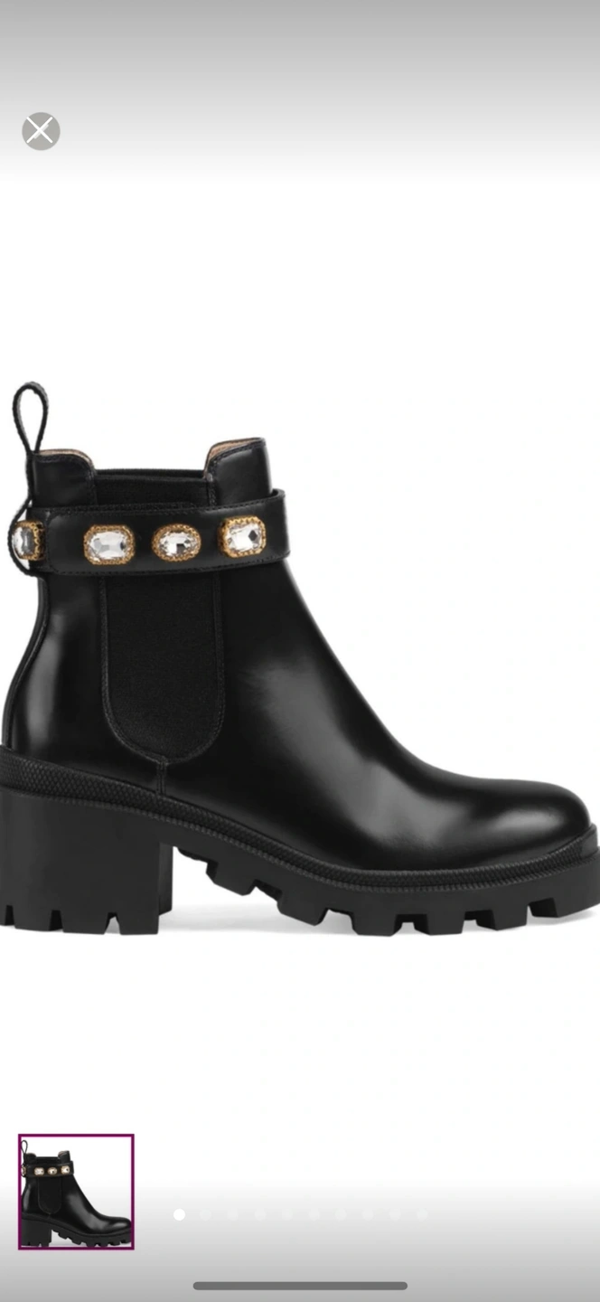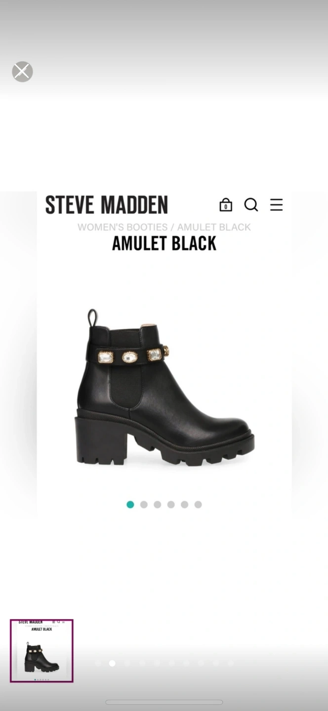 Black leather booties with a chunky heel and embellished strap. Brand new From Steve Madden, the Amulet Jewel Embellished Lug Sole Chunky Block Heel Combat Booties feature: Synthetic upper with jewel embellished band Slip-on design Pull tab at heel Synthetic lining Synthetic outsole Approx. 4.5" boot shaft height Approx. 11" boot shaft circumference Approx. 2" heel height