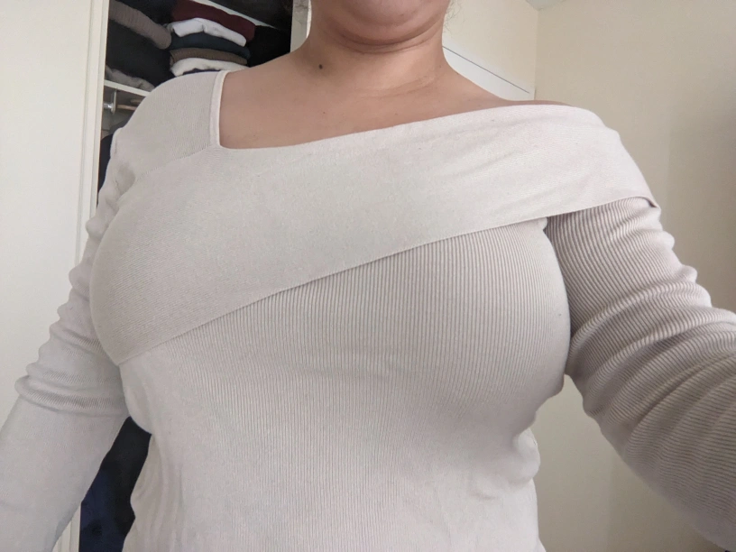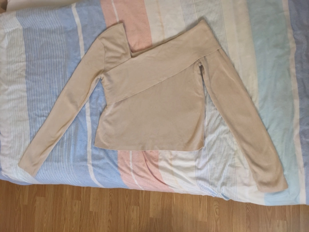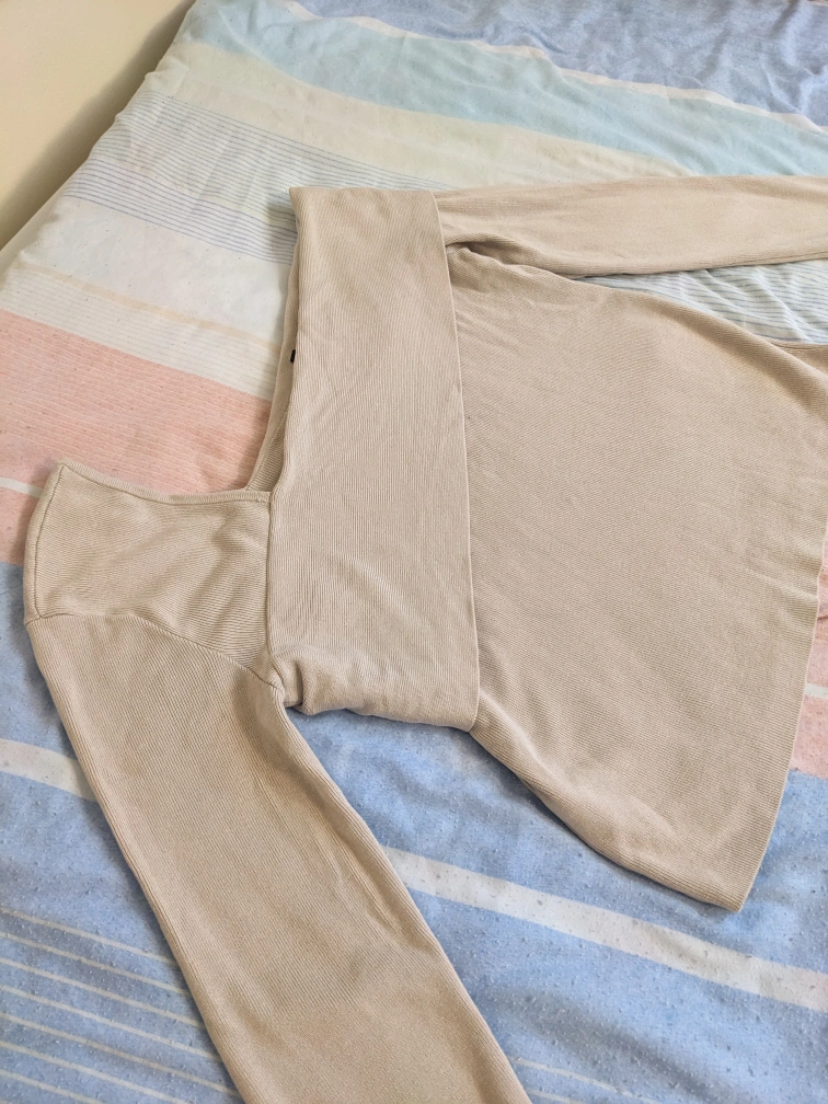 Other Details: - Cream/beige ribbed top - 70% Viscose, 30% Nylon - Sleeve length Approximately 23" - Top of shoulder to hem approximately 19" - Front hip to hip approximately 16.5" - Off the shoulder - Retails for $50