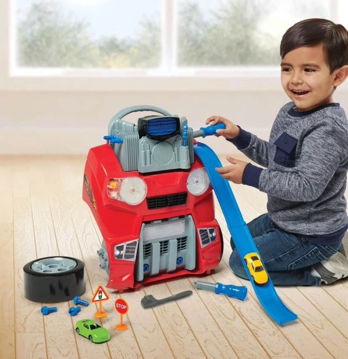Brand new never used! This is a fun and interactive toy car playset for kids! It includes a car with working lights and sounds, as well as a variety of tools and accessories. The car also has a ramp and a storage compartment. This is a great toy for any child who loves cars.