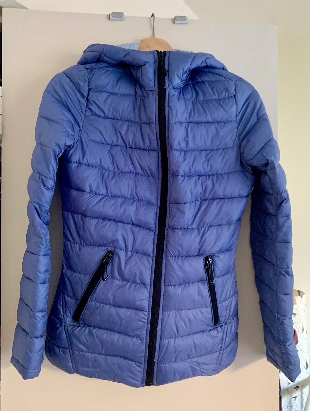 Fall is coming 🍂 Blue puffer jacket with a hood. Size XS. Two zippered pockets on the front. Zipper closure. Ultralight and packable, so perfect for the fall and to travel with. $60 Cash or etransfer Pick up in the West End on Barclay Street (Thurlow) Check out my other listings.